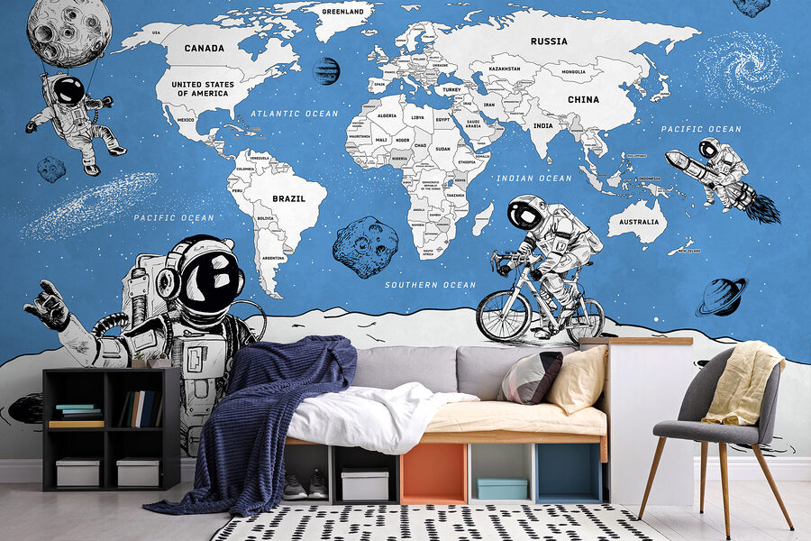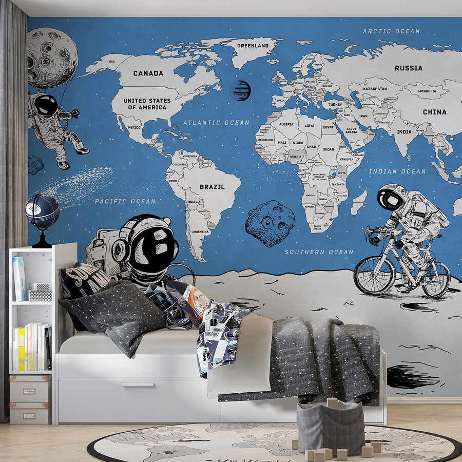 Transformeer elke ruimte met deze eigenzinnige muurschildering met een persoon die fietst op de maan! Het is net een grillig avontuur waar zwaartekracht geen regel meer is. Deze muurschildering is perfect voor een kinderkamer of voor iedereen die jong van hart is en geeft een speelse en fantasierijke sfeer. Stel je voor: elke keer als er iemand langsloopt, moeten ze grinniken bij het zien van een astronaut die door het heelal zoeft. Het stimuleert creativiteit en nieuwsgierigheid, waardoor het een geweldige gespreksstarter is. En wie houdt er nu niet van een uitzicht op de aarde terwijl je tussen de sterren zweeft? Een perfecte ontsnapping zonder je kamer te verlaten!