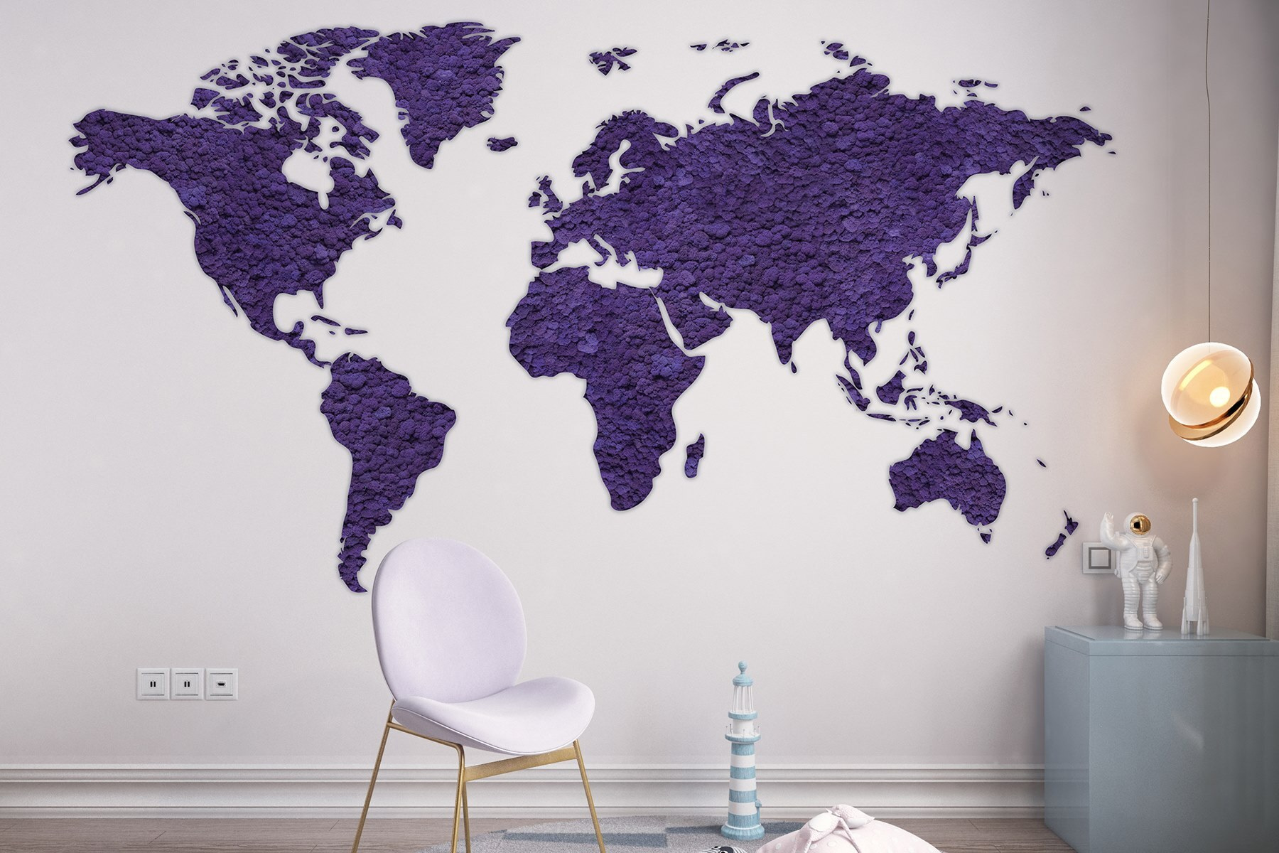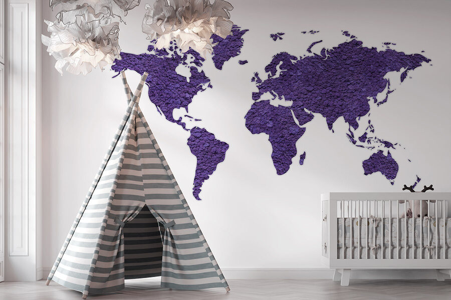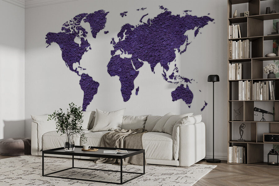 Tover je ruimte om in een wereld vol avontuur met deze prachtige muurschildering “Kaart van de Wereld”. Stel je voor – elk land knalt met een rijke paarse tint en nodigt uit tot dagdromen over verre oorden en spannende reizen. Het is alsof je een gespreksstarter op je muur hebt! Vrienden zullen langskomen en hun favoriete plekjes aanwijzen-“Oh, daar ben ik geweest!”. En bedenk, elke keer als je er naar kijkt, begin je misschien je volgende reis te plannen (misschien een reis naar dat kleine café in Parijs dat je altijd al hebt willen proberen). Deze muurschildering is perfect voor een woonkamer, slaapkamer of zelfs een gezellige studeerkamer en decoreert niet alleen, maar inspireert ook! Wie wist dat geografie zo stijlvol kon zijn? Het is een tapijt van texturen en kleuren en vormt de perfecte achtergrond voor geïmproviseerde dansfeestjes of serene leeshoekjes. Laat je muren boekdelen spreken!