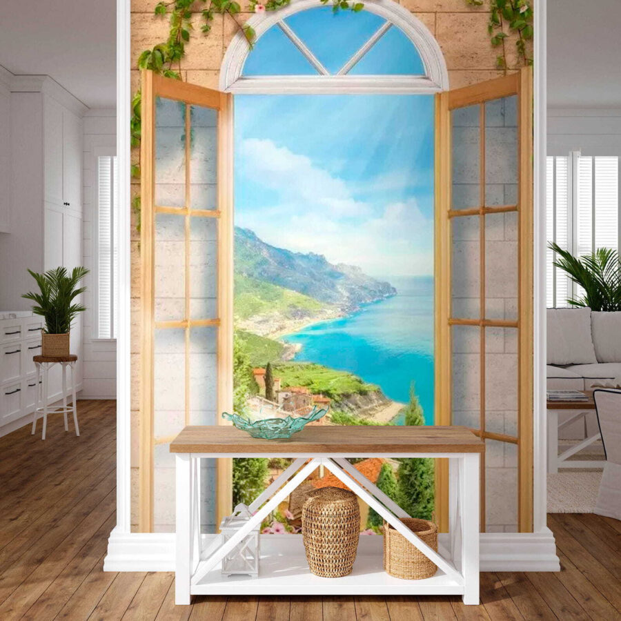1 beoordeling voor Fotobehang Uitzicht op zee vanuit open raam