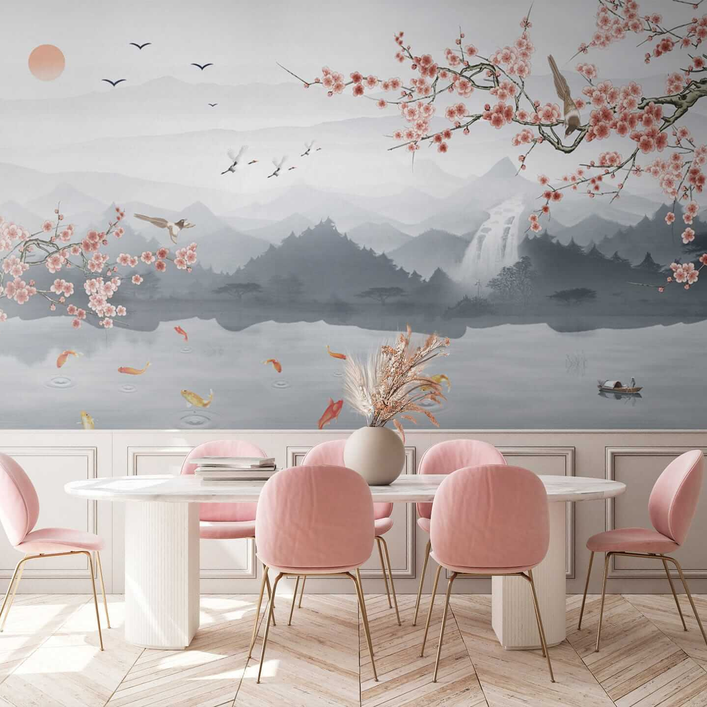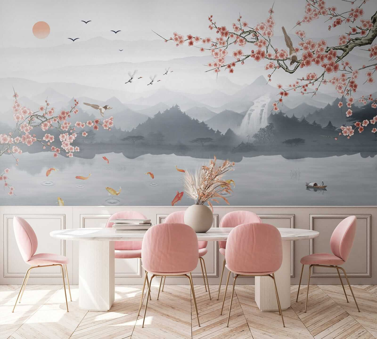 Stel je voor dat je wakker wordt met deze prachtige muurschildering! “Pink Circle on White” is niet zomaar een decor – het is als een frisse wind in je kamer. Bloesems roze als suikerspin, zachte bergen als gefluister op de achtergrond en een serene sfeer aan zee… Dit stuk brengt een vleugje natuurlijke rust in je dag. Stel je voor dat je tot rust komt terwijl deze schoonheid je begroet – het is net een kleine ontsnapping telkens als je langsloopt. Perfect voor een leeshoek of die lege muur waar je over hebt nagedacht. Het is meer dan alleen kunst – het is een rustig moment gevangen in de tijd!