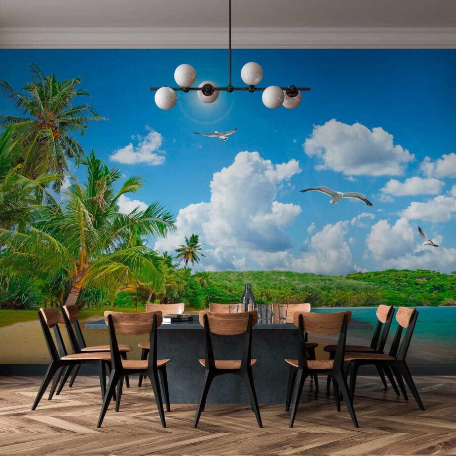 Stel je eens voor dat je een kamer binnenstapt waar levendige vogels tegen een oogverblindend blauwe hemel vliegen en je meteen naar een zonnig strand brengt. Deze muurschildering, getiteld “Fotobehang Bird Flying in the Sky”, geeft die vrije sfeer perfect weer. Het is als een minivakantie voor je muren, die uitnodigt tot een gevoel van rust en vreugde. Stel je voor dat je vrienden ontvangt en hun gezichten ziet oplichten terwijl ze het tafereel in zich opnemen, of dat je ‘s ochtends geniet van een kopje koffie terwijl je je voorstelt hoe de golven zachtjes kabbelen aan je voeten. Wie wist dat decoratie zo opbeurend kon zijn? Het is meer dan alleen een muurschildering; het is een ervaring die alledaagse momenten opfleurt. Perfect voor wie droomt van kustavonturen vanuit huis.