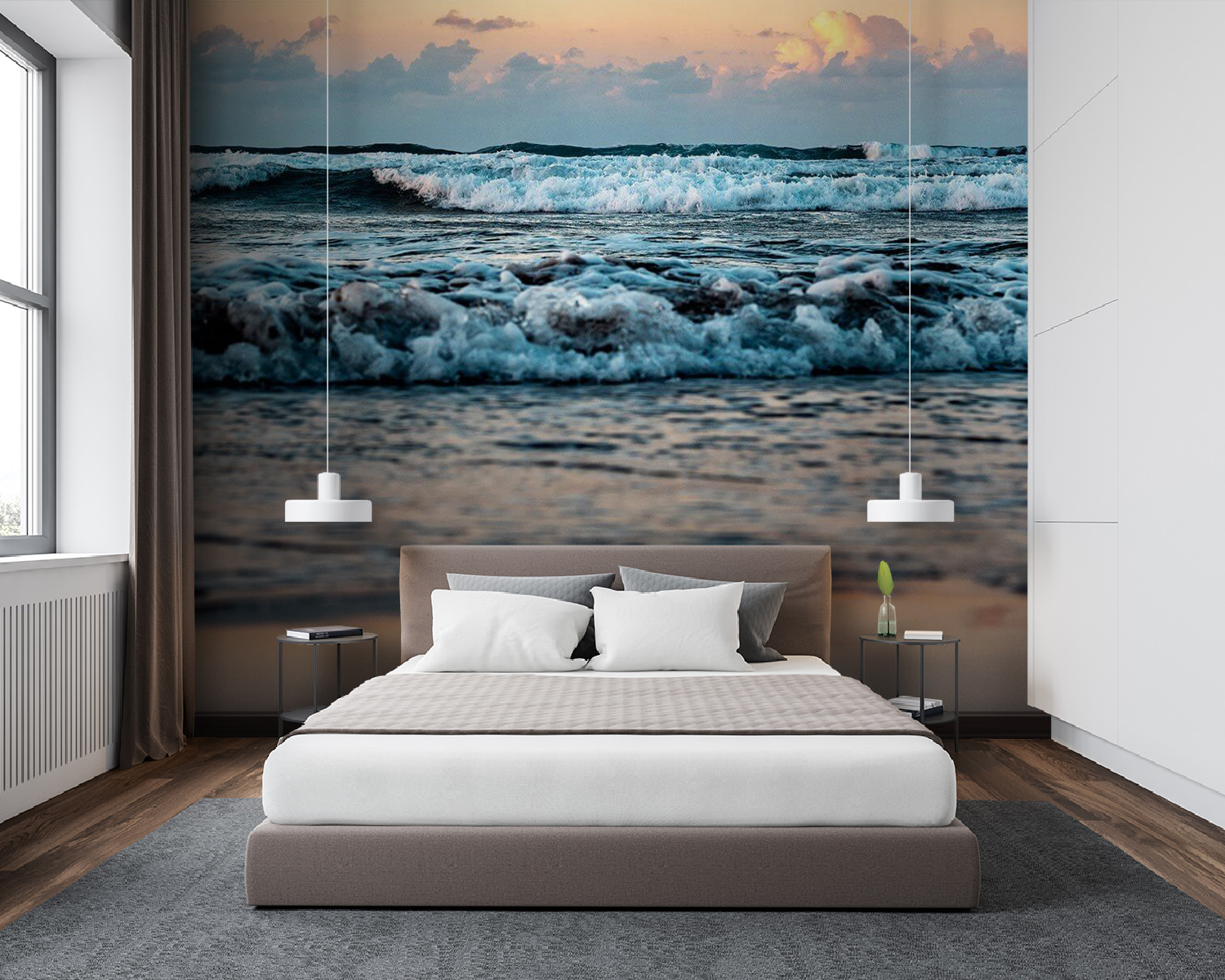 Droom je er wel eens van om wakker te worden met het geluid van zachte golven en een zonsopgang? Deze muurschildering, “Waves Dance Under a Sunrise Sky”, brengt die dromerige kustsfeer naar jouw kamer! Stel je voor dat je een kamer binnenstapt waar de golven lijken te dansen met de kleuren van de dageraad. Het is niet alleen een visuele sfeer, het is een hele sfeer die de sereniteit van de zee weerspiegelt. Perfect voor als je het gevoel wilt hebben dat je altijd op vakantie bent, zelfs als het maandagochtend is. Plaats het in een woonkamer of slaapkamer en kijk hoe het de ruimte transformeert met zijn rustgevende essentie. Bovendien is er iets rustgevends aan die pasteltinten die zich mengen met de schuimende golven. Maak je klaar voor de complimenten… en misschien wat afgunst!