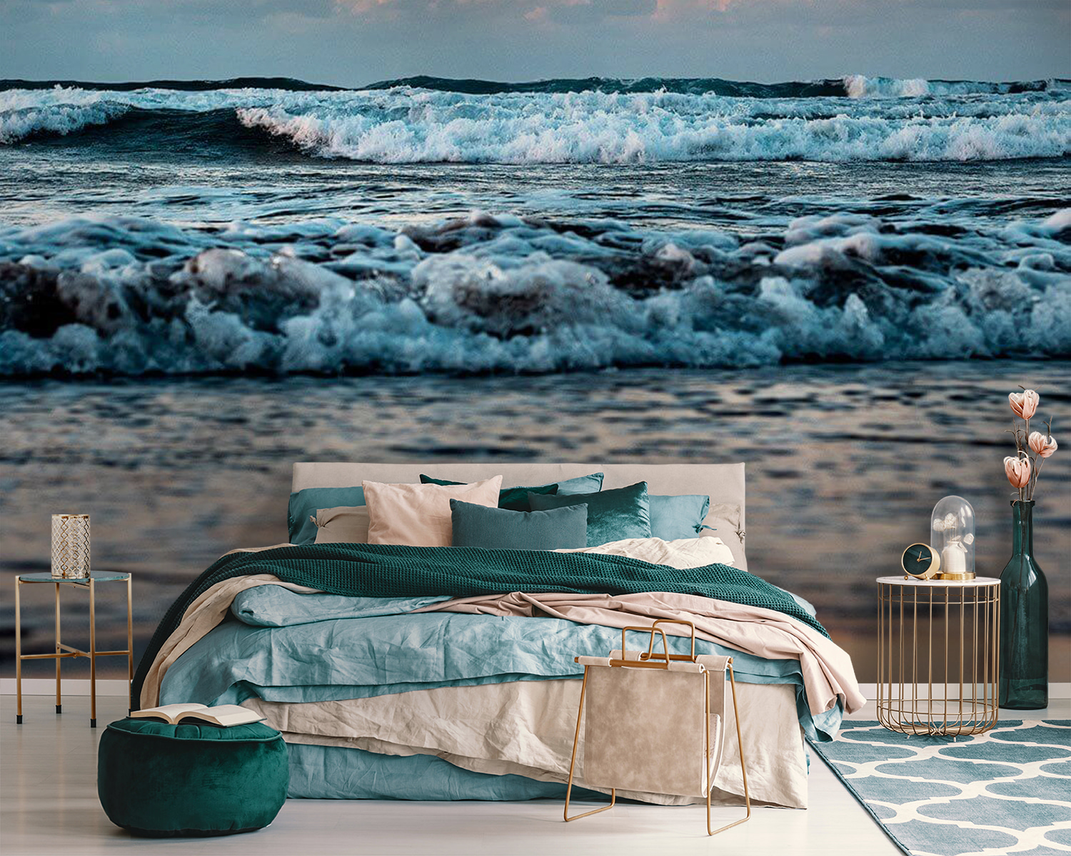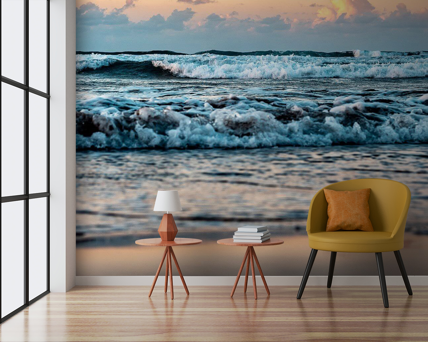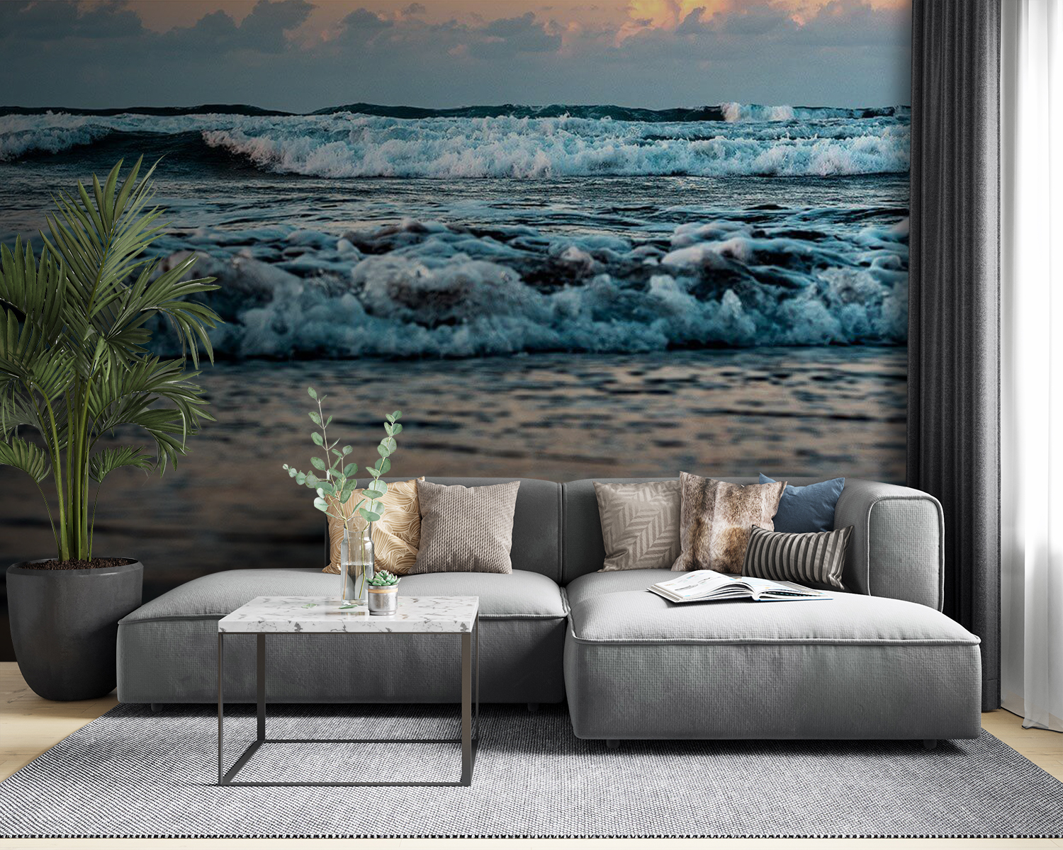 Fotobehang Golven dansen onder een zonsopgang. (SKU: u43220)