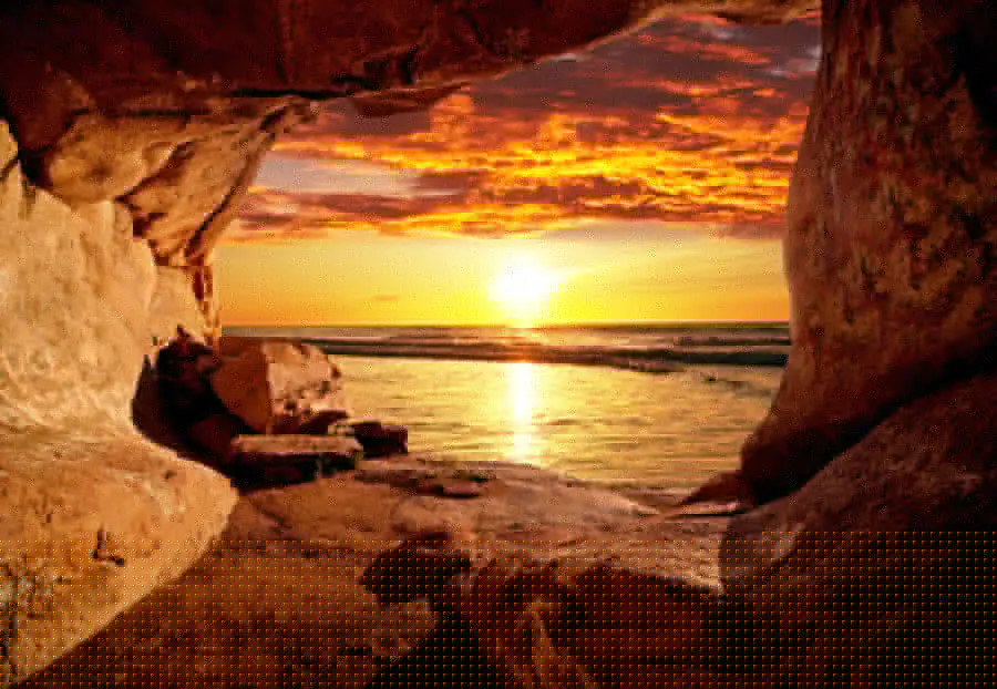 Stel je voor dat je je woonkamer binnenstapt en begroet wordt door een prachtige muurschildering van een majestueuze rots onder een zonsondergang, alsof je op het punt staat de woestijn in te trekken. Dit stuk brengt een stukje natuur naar je muur, waardoor het alledaagse leven voelt als een avontuur. De warme tinten van de zon die weerkaatsen op het water kunnen vreugde opwekken, net als een verrassingsweekendje weg! Stel je voor dat je lekker op de bank ligt met een kop koffie in je hand, terwijl deze muurschildering je omhult in een gevoel van vrede. Het is meer dan een decoratie; het is een kleine ontsnapping die een hele nieuwe sfeer toevoegt aan je ruimte.