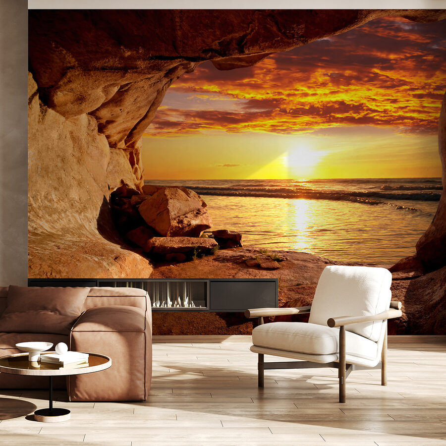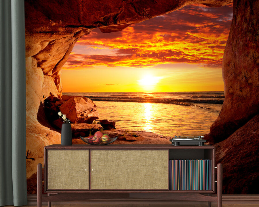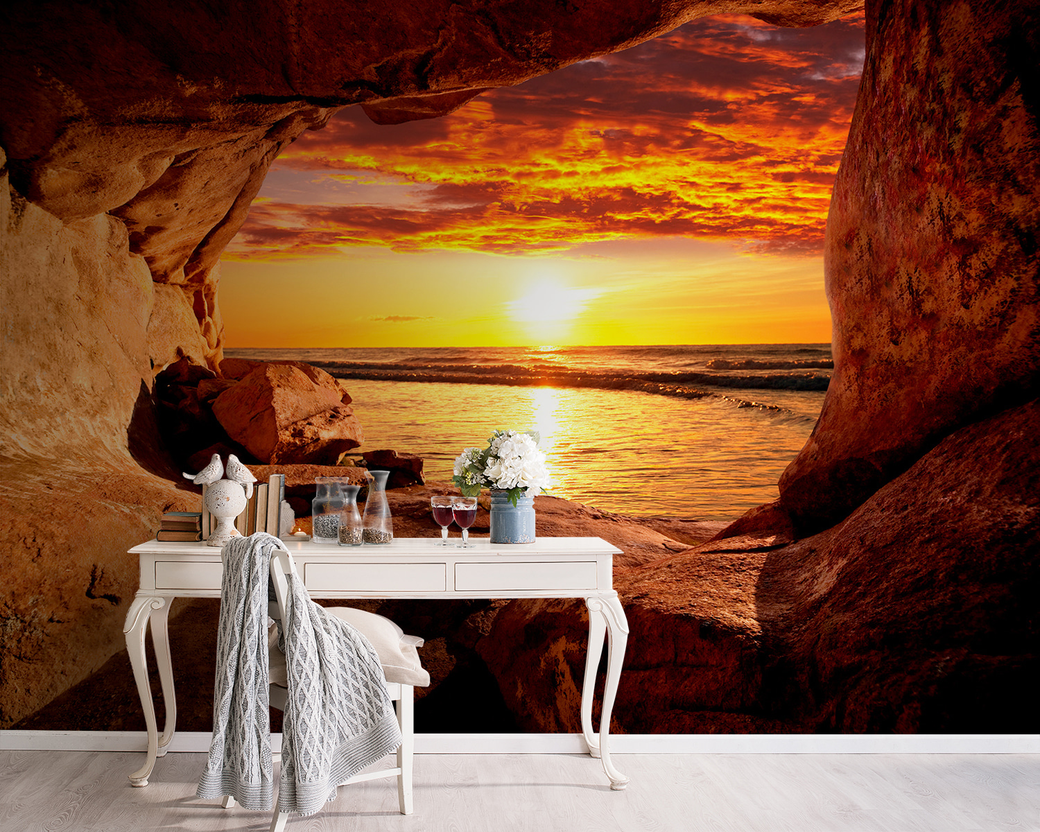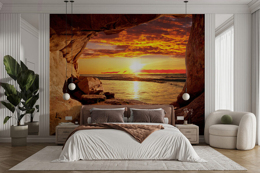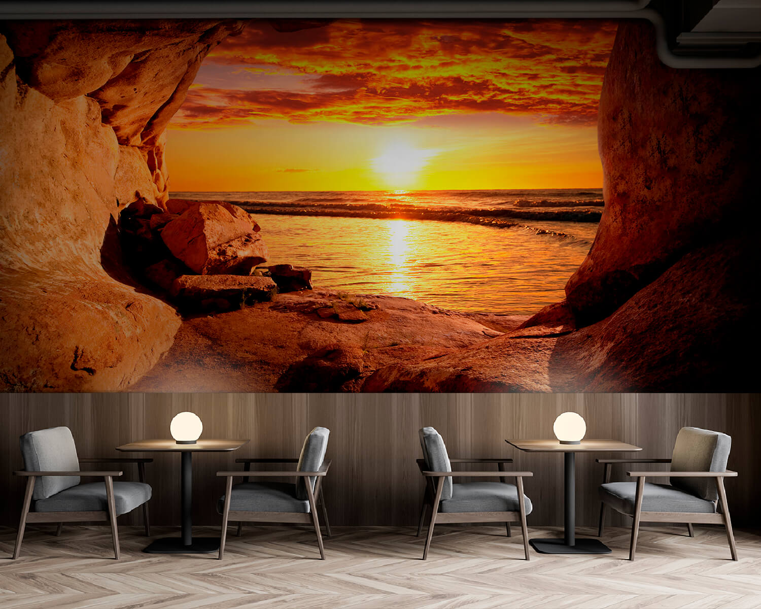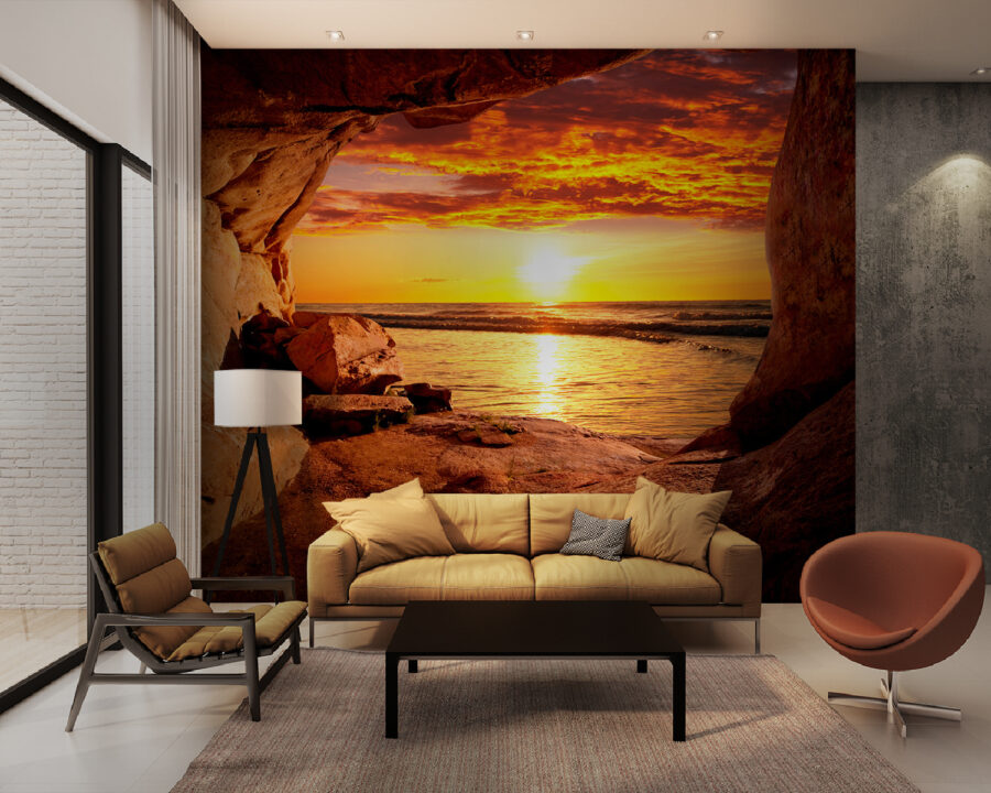Stel je voor dat je je woonkamer binnenstapt en begroet wordt door een prachtige muurschildering van een majestueuze rots onder een zonsondergang, alsof je op het punt staat de woestijn in te trekken. Dit stuk brengt een stukje natuur naar je muur, waardoor het alledaagse leven voelt als een avontuur. De warme tinten van de zon die weerkaatsen op het water kunnen vreugde opwekken, net als een verrassingsweekendje weg! Stel je voor dat je lekker op de bank ligt met een kop koffie in je hand, terwijl deze muurschildering je omhult in een gevoel van vrede. Het is meer dan een decoratie; het is een kleine ontsnapping die een hele nieuwe sfeer toevoegt aan je ruimte.