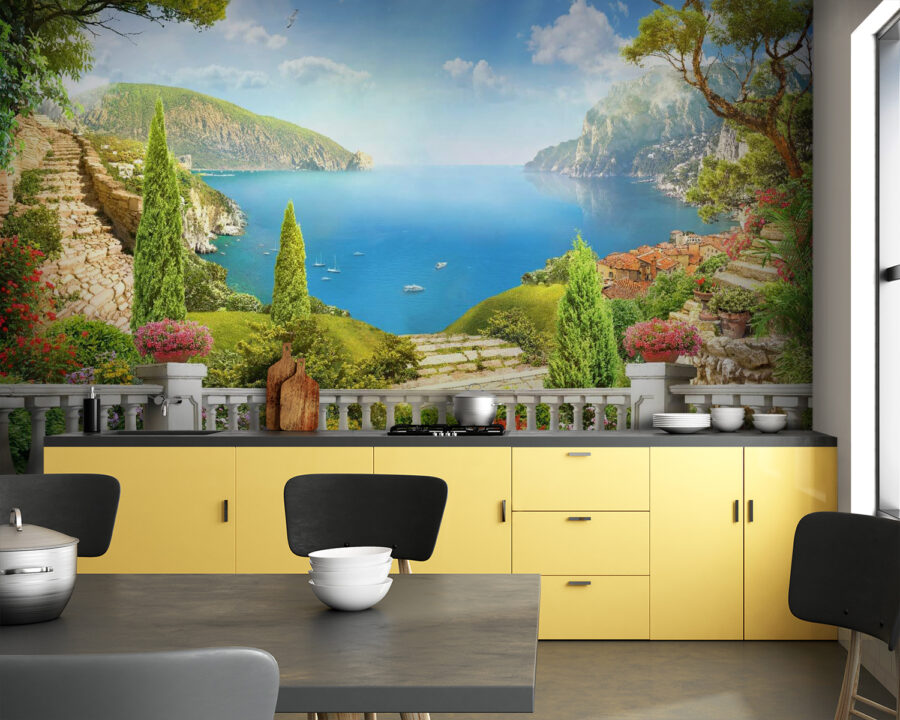 Stel je voor dat je een zonnige dag binnenstapt met deze muurschildering “Bird Flying in the Sky”. Het is alsof je wordt meegenomen naar een vrolijke vakantie aan zee zonder je woonkamer te verlaten. De levendige kleuren knallen er gewoon uit en brengen een vleugje natuurschoon naar je muren. Stel je voor: het zachte gebrom van de zeebries, het weelderige groen en een lucht die zo blauw is dat hij lijkt te zingen. Om nog maar te zwijgen van de vogels die boven je hoofd zweven, klaar om wat vreugde te verspreiden. Perfect om een gezellig hoekje op te fleuren of een statement te maken op een lege muur. Deze muurschildering is niet alleen decor; het is een stukje paradijs.