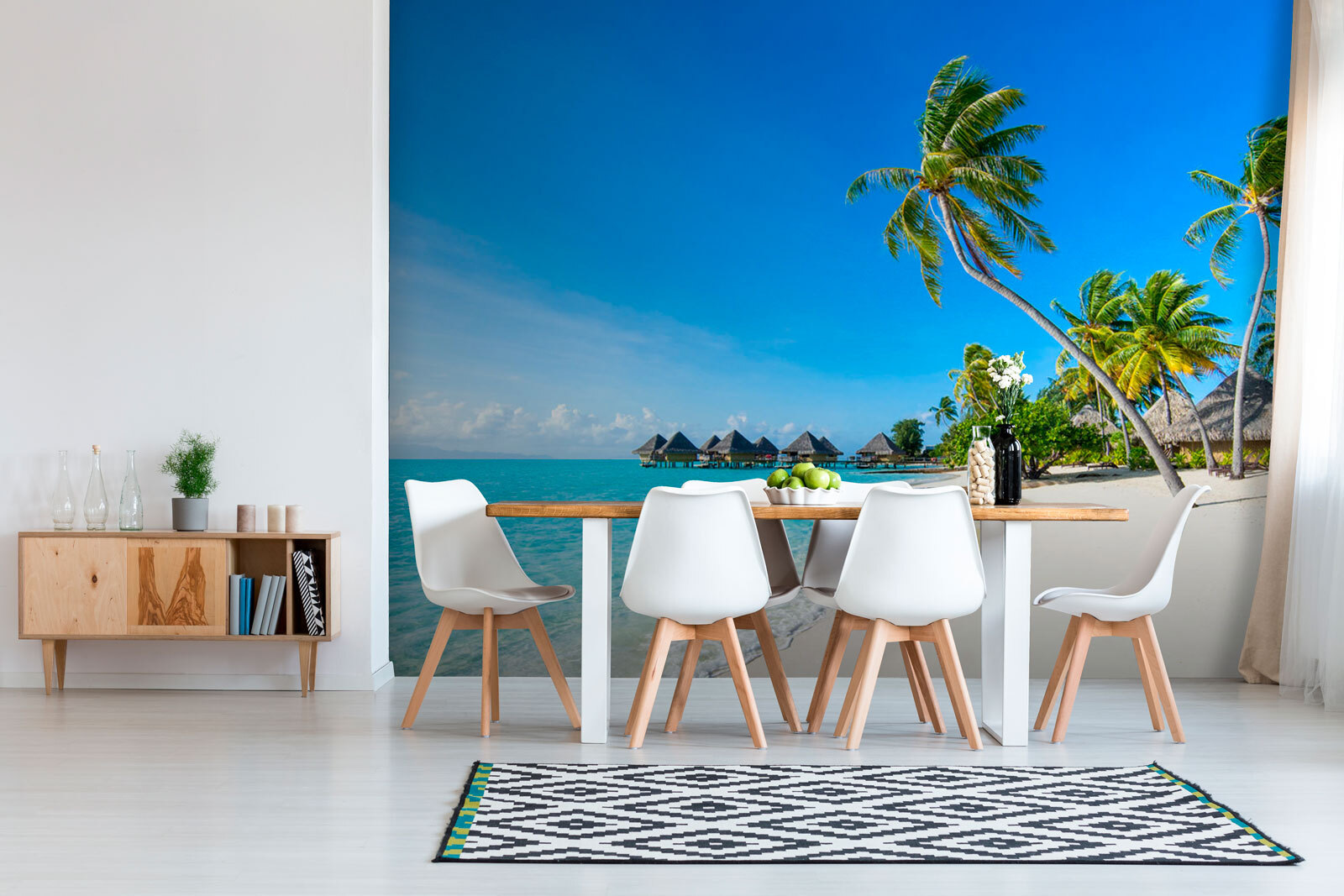 Stel je voor dat je elke dag wakker wordt met uitzicht op een prachtig strand met palmbomen die zachtjes wuiven in de wind. Deze muurschildering, getiteld “Strand met palmbomen en stroparaplu’s”, brengt die dromerige sfeer aan zee naar je kamer. Of je nu hunkert naar een herinnering aan een voorbije vakantie of gewoon je ruimte wilt doordrenken met rust, dit ontwerp doet het. De diepblauwe lucht, het heldere turquoise water en de uitnodigende rieten parasols brengen je meteen naar een ontspannen, zonnig paradijs. Perfect voor elke kustliefhebber, het maakt een statement zonder te schreeuwerig te zijn – het is meer een vriendelijk duwtje in de rug om het rustig aan te doen, misschien zelfs met een boek onder een denkbeeldige palm. Stel je voor dat je vrienden ontvangt en hun afgunst ziet als ze je getransformeerde kamer binnenstappen. Er is iets met dat zachte kabbelen van de golven en het verre silhouet van dromerige hutjes dat de ziel gewoon kalmeert. Dus ga je gang, verander je muur in een venster naar het paradijs – het is het op één na beste om er echt te zijn!