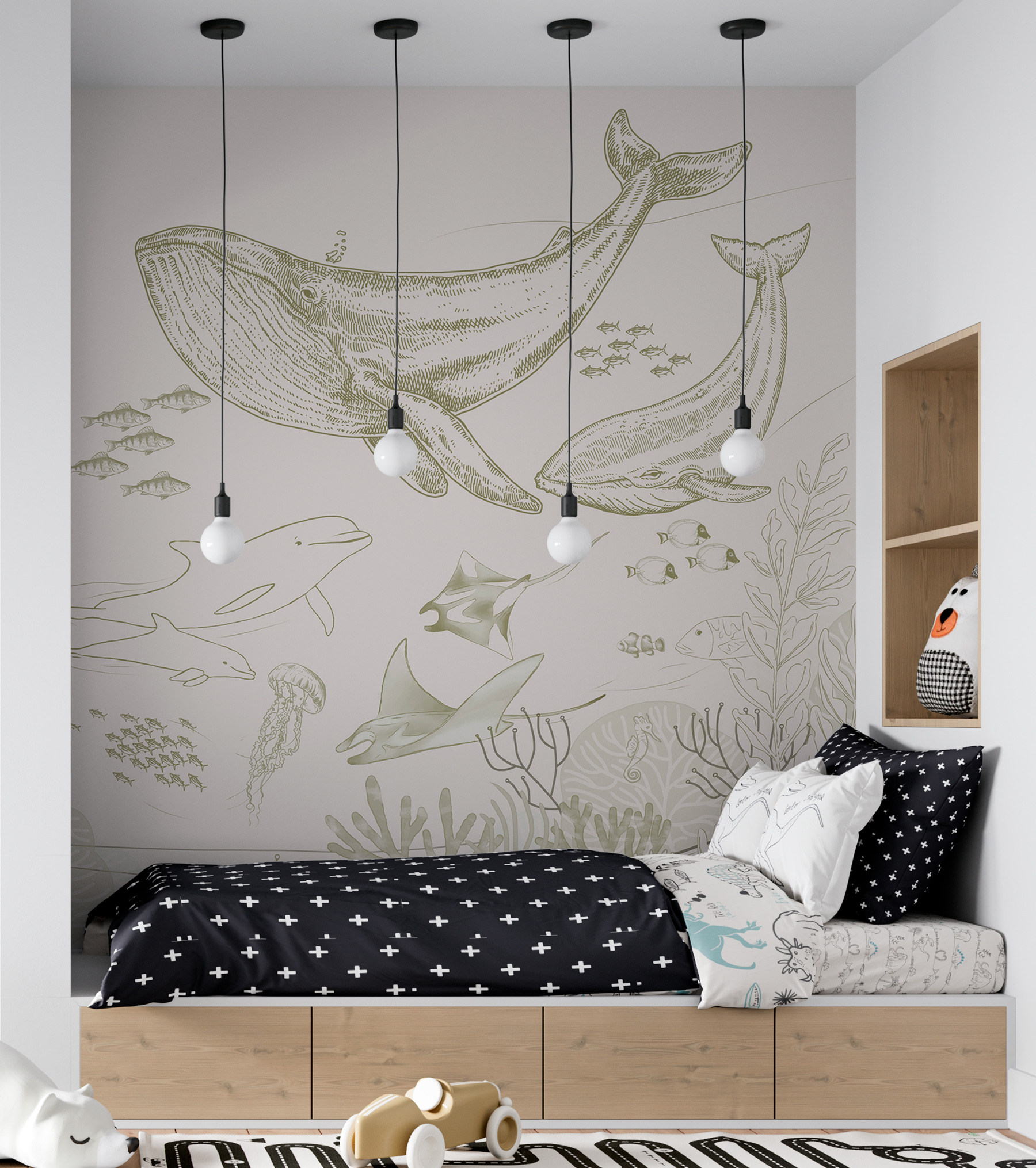 Stel je voor: een kleintje dat enthousiast de pijlstaartrog, walvissen of kwallen aanwijst tijdens verhaaltjes voor het slapengaan en verdwaalt in zijn eigen onderwateravontuur. Beter nog, het is ook een hit onder volwassenen – waarom niet een vleugje charme van de zee toevoegen aan je woonkamer of kantoor? Het is alsof je je kamer een koele, luchtige make-over geeft zonder dat je last hebt van vervelend zand. Veel beter, toch?