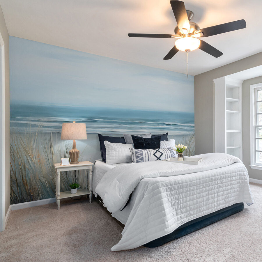 Stel je voor dat je een kamer binnenstapt die aanvoelt alsof er net een zachte zeebries is binnengestapt. Deze muurschildering “Strand met gras en golven” doet precies dat. Het legt de serene schoonheid van de kust vast, met zachte kleuren die ontspanning uitstralen. Stel je voor dat je een luie middag doorbrengt terwijl je naar de golven staart en je zorgen voelt wegspoelen als voetafdrukken in het zand. De fijne grassen wiegen alsof ze je uitnodigen voor een wandeling langs de kust. Het is een perfect accent voor een gezellige leeshoek of een lichte eethoek, waar een beetje strandgevoel elke dag in een mini-vakantie kan veranderen. Perfect voor dromers en strandliefhebbers!