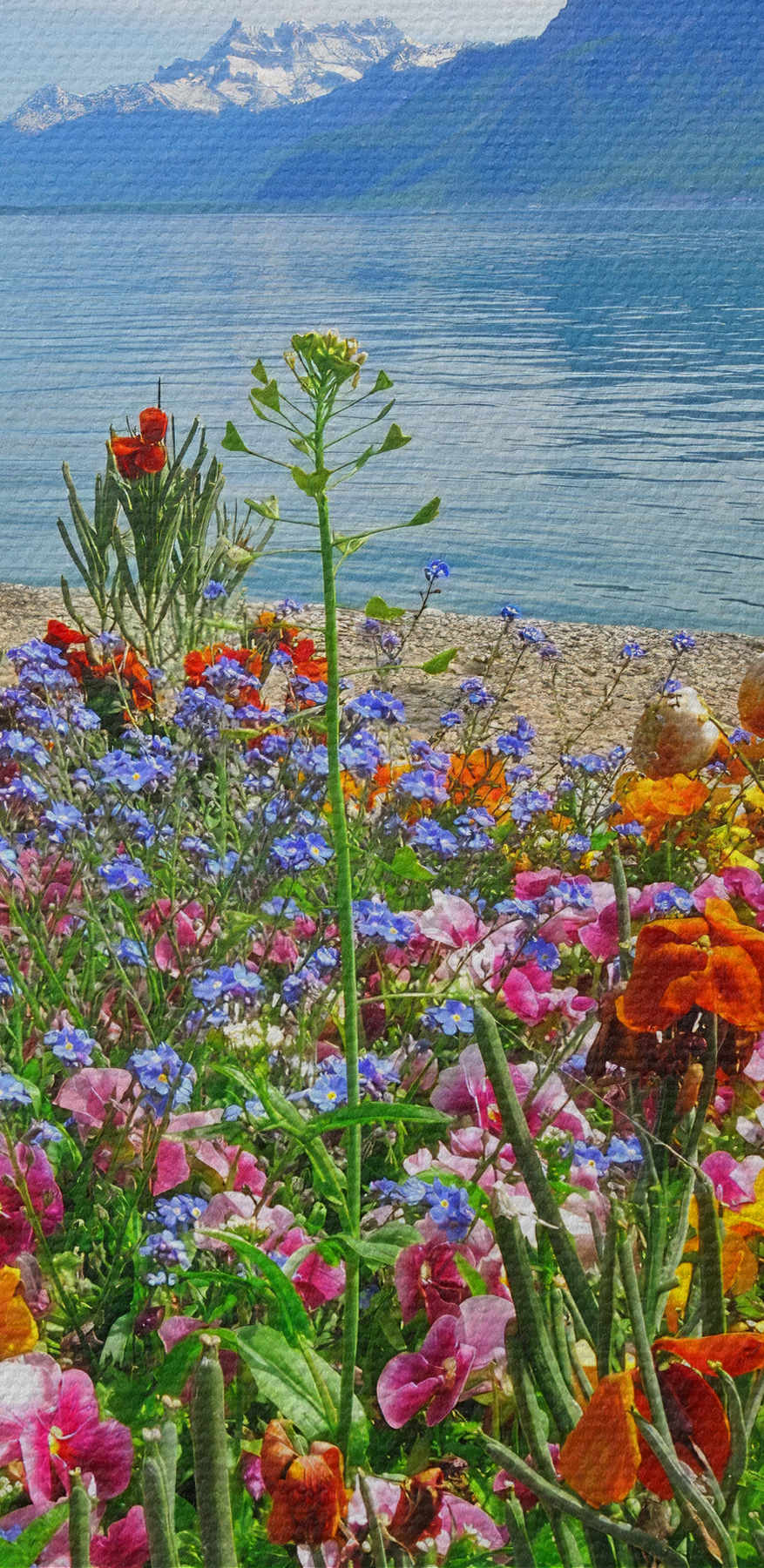 Transformeer elke kamer met deze levendige “Flower Bed with Flowers and a Lake” canvasprint. Stel je voor dat je wordt meegevoerd naar een zonovergoten meer, met bloeiende bloemen in kleuren waar de regenboog jaloers op zou kunnen zijn. Elke bloem vertelt een verhaal over vreugde, warmte en luie middagen aan het water. De achtergrond van zacht kabbelend water en majestueuze bergen voegt een serene sfeer toe, perfect voor die momenten waarop het leven een beetje te hectisch aanvoelt. Hang het in de woonkamer en zie hoe gesprekken opbloeien als de bloemen zelf. Het is net alsof je een stukje natuur in huis haalt – zonder de viezigheid! En misschien inspireert het wel tot die spontane picknick waar je al die tijd over hebt gedroomd.