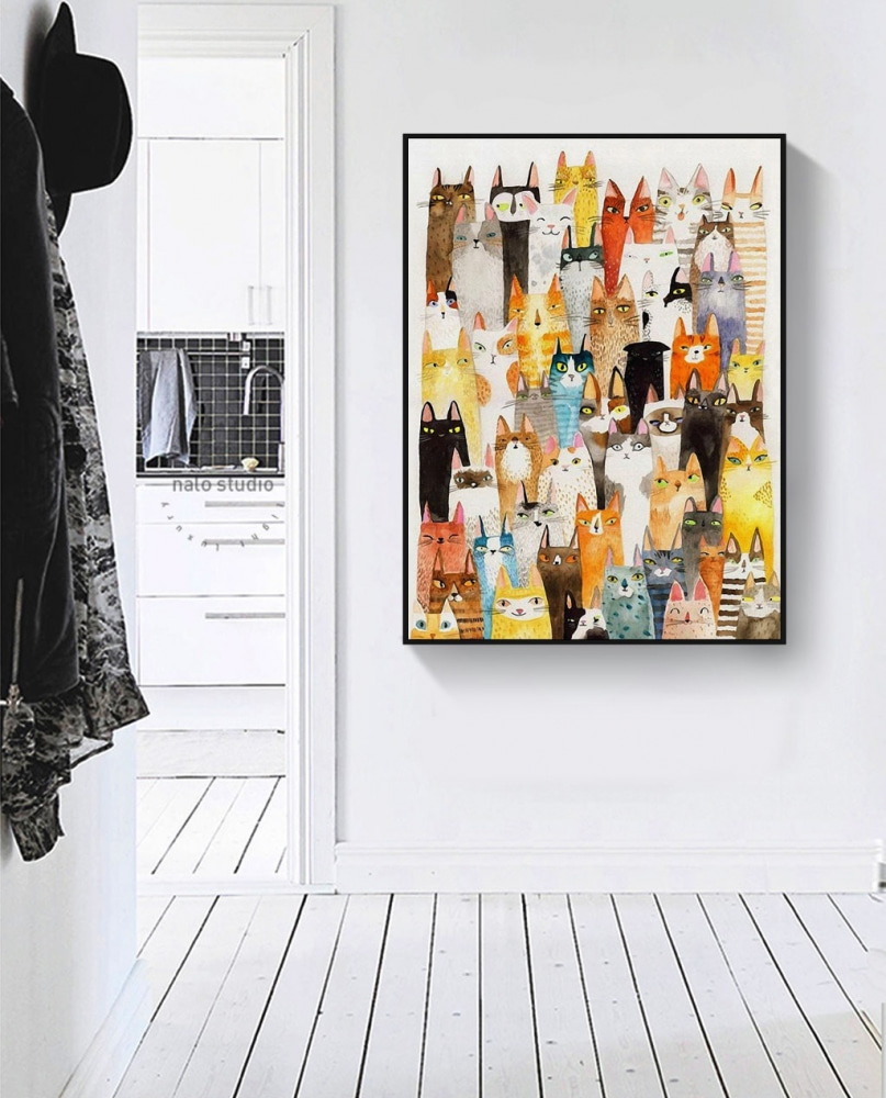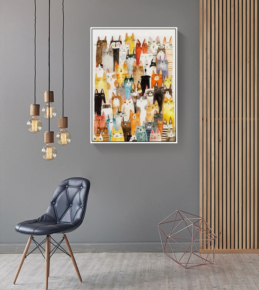 Stel je voor dat je wakker wordt met een muur vol kleurrijke, nieuwsgierige katten die je aanstaren met die brede, speelse ogen. Deze canvasprint, “Colorful Cats Gather with Curious Eyes”, voelt aan als een instant sfeermaker! Een heleboel eigenzinnige katachtigen, elk met hun eigen charmante persoonlijkheid – het is alsof je een mini-kattenparade in je woonkamer hebt. Perfect voor iedereen die een vleugje grillige charme in huis niet kan weerstaan. Zie je gasten al gniffelen als ze hun favoriet zien – “Oh, die heeft zeker een geheim!”. Of het nu voor een kinderkamer is of een eigenzinnig hoekje in je leeshoek, dit stuk barst gewoon van de vrolijke, leuke vibes. En weet je wat? Het zal zelfs de chagrijnigste dag een beetje lichter maken.