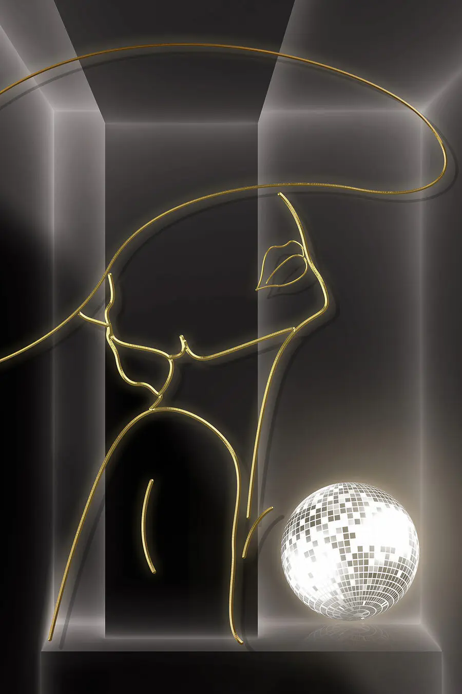 Transformeer je kamer met deze fascinerende canvasprint met een stijlvolle vrouw en een discobal, die een vleugje eigenzinnigheid en charme brengt. Stel je voor dat het een gezellig hoekje opfleurt of een levendig gesprek in je woonkamer op gang brengt. De eenvoudige lijnen van het ontwerp roepen een gevoel van elegantie op, terwijl de discobal er een speelse draai aan geeft – perfect voor iedereen die van een goed dansfeest houdt, ook al is het maar in de woonkamer. Het is als een instant sfeermaker! Hang het op en laat het inspireren tot spontane danspauzes, want wie zegt dat muren niet een beetje plezier kunnen hebben?