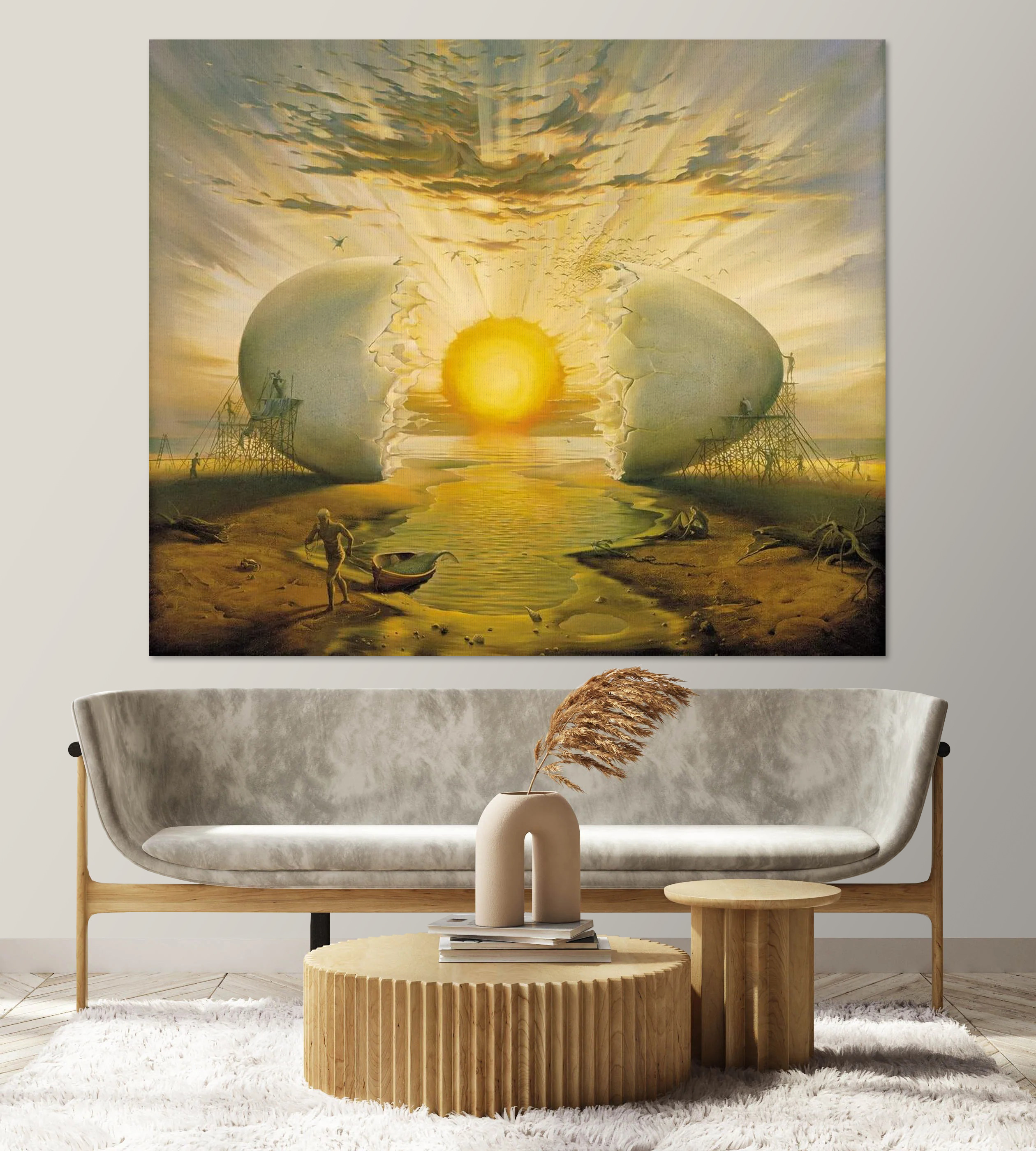 Duik in de grillige wereld van “Canvas Schilderijen Man die een groot ei schildert”. Dit is niet zomaar een kunstwerk; het is een ervaring. Stel je een zonsondergang voor die tevoorschijn komt uit een eierschaal, alsof het universum openbreekt om wat vreugde binnen te laten. Het stof van het strand, de zachte geluiden van kabbelend water en dit ongelooflijke tafereel kunnen elke muur veranderen in een portaal van inspiratie. Het is een balans tussen speels en diepzinnig, waardoor iedereen die er een glimp van opvangt even stilstaat en misschien zelfs moet grinniken. Perfect voor dat ene hoekje dat persoonlijkheid nodig heeft, het is als een conversatiestarter waarvan je nooit wist dat je die nodig had. Neem een stuk mee naar huis dat tot de verbeelding spreekt en verwondering opwekt, en voeg een laag creativiteit toe aan je interieur.