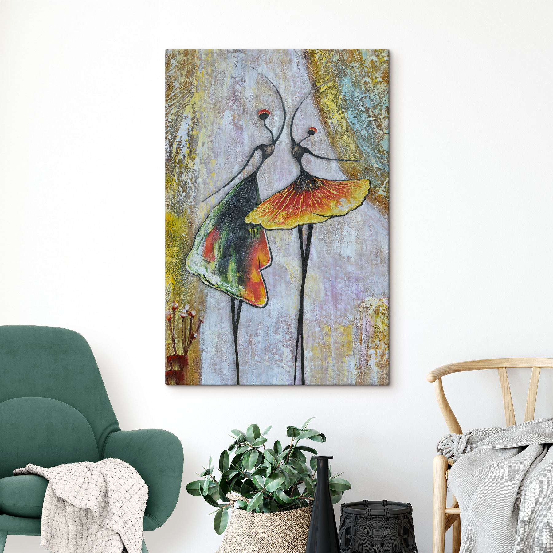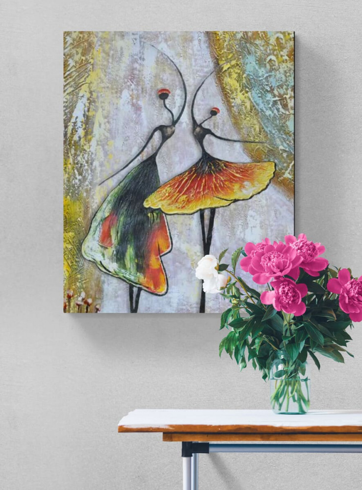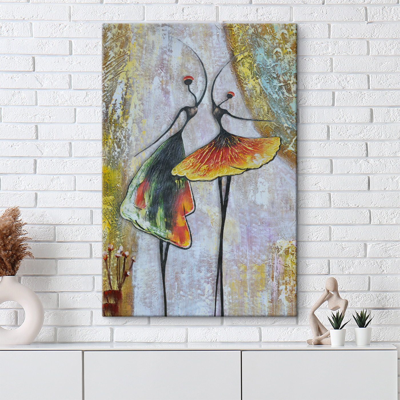 Stap in een levendige wereld met deze opvallende canvasprint met abstracte dansers die gevangen zijn in de vreugde van beweging. Stel je deze kleurrijke figuren voor die sierlijk ronddraaien, alsof elke blik een vleugje energie in je ruimte brengt. Perfect voor een gezellige woonkamer of een lichte entree, dit stuk nodigt uit tot glimlachen en een beetje dagdromen. Het is alsof je een klein dansfeestje houdt telkens als er iemand langsloopt. Die wervelende kleuren? Ze zullen zeker gesprekken op gang brengen. Hang het op, leun achterover en laat dit levendige kunstwerk een leuke, grillige toets geven aan elke muur.