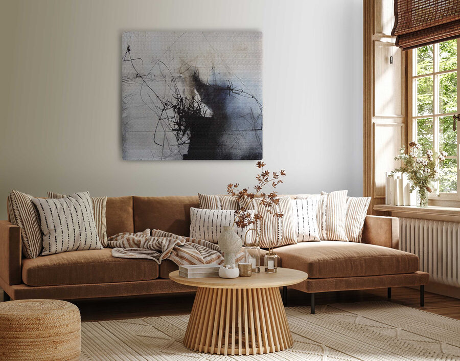 Stel je voor dat dit in je woonkamer of kantoor hangt. Gasten zullen geïntrigeerd zijn, misschien zelfs een beetje jaloers. Het is zowel rustgevend als tot nadenken stemmend. En maak je geen zorgen, het past overal bij, of je ruimte nu ultramodern is of een meer eclectische, relaxte sfeer heeft.