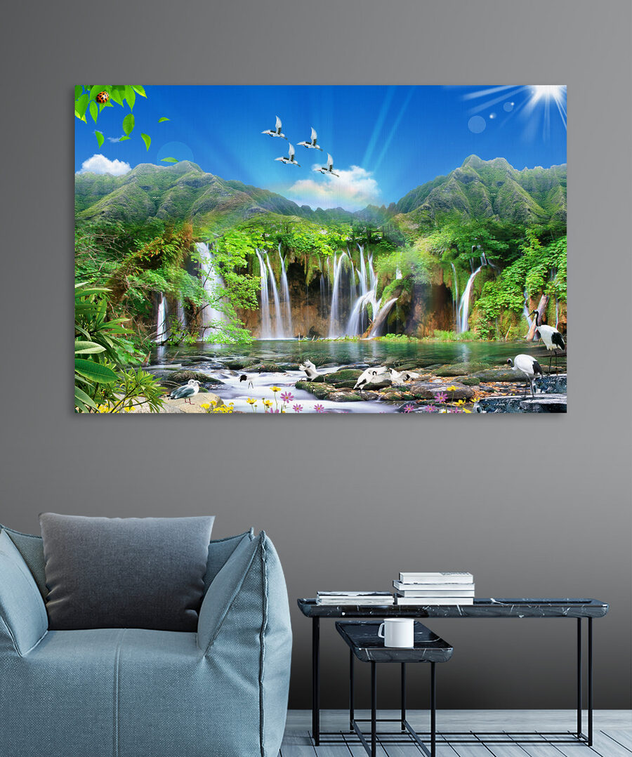 Stel je voor: je hebt een lange dag achter de rug en je loopt je kamer binnen en ziet deze prachtige canvasprint, “Serene Watervallen en Zwevende Vogels”. Het is alsof je een geheim paradijs binnenstapt, direct aan je muur. Het weelderige groen, de zachte watervallen die naar beneden klateren, het is genoeg om een verkoelend briesje te voelen als je er alleen maar naar kijkt. En die vliegende vogels? Ze geven een vredige sfeer. Deze muurschildering is perfect voor je woon- of slaapkamer en zorgt ervoor dat elke ruimte aanvoelt als een rustig toevluchtsoord. Het is niet zomaar decoratie; het is een stukje natuur waar je elke dag van kunt genieten. 🌿