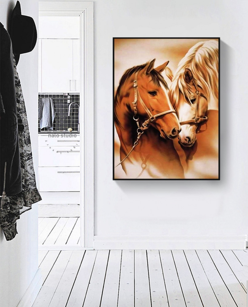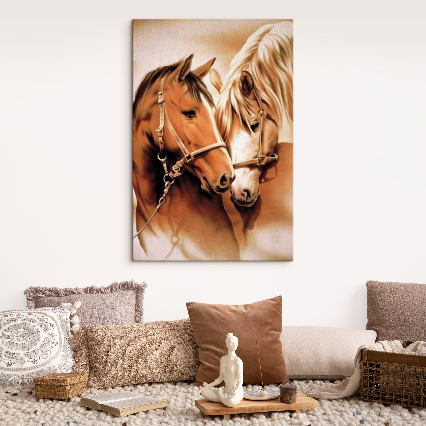 Deze canvasprint, met twee paarden die een teder, rustig moment delen, is gewoonweg prachtig. Het trekt je naar binnen, nietwaar? Zie het voor je – een zacht tafereel van pure vrede en verbondenheid aan je muur. Je kunt het zachte snuiven bijna horen en de zachte adem voelen. Stel je dit eens voor in je woonkamer of een gezellig leeshoekje. Het geeft een rustgevende sfeer, alsof de paarden een geheim fluisteren dat alleen zij kennen. En paardenliefhebbers, deze is voor jullie. Het is alsof je een stukje weiland in je kamer brengt. Het neemt je mee op een emotionele rit – elke keer als je er naar kijkt! Wedden dat er ook interessante gesprekken uit voortkomen? Wie had gedacht dat een eenvoudig beeld zoveel warmte en rust kon creëren? Een perfecte mix!
