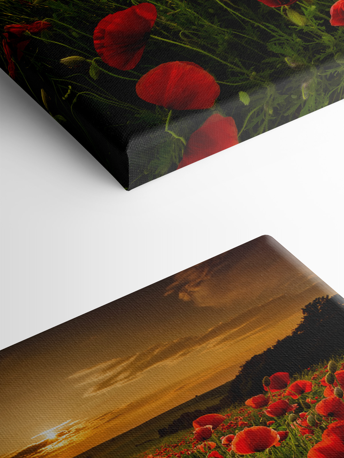 Deze canvasprint “Rode klaprozen onder zonsondergang” moet je gezien hebben. Stel je een vredig veld voor met levendige rode klaprozen die zich koesteren in de zachte gloed van een ondergaande zon. Het is net het vuurwerk van de natuur zelf, maar dan veel rustiger. De kleuren zijn zo rijk dat je bijna denkt dat je de wind kunt voelen waarin deze bloemen wiegen!