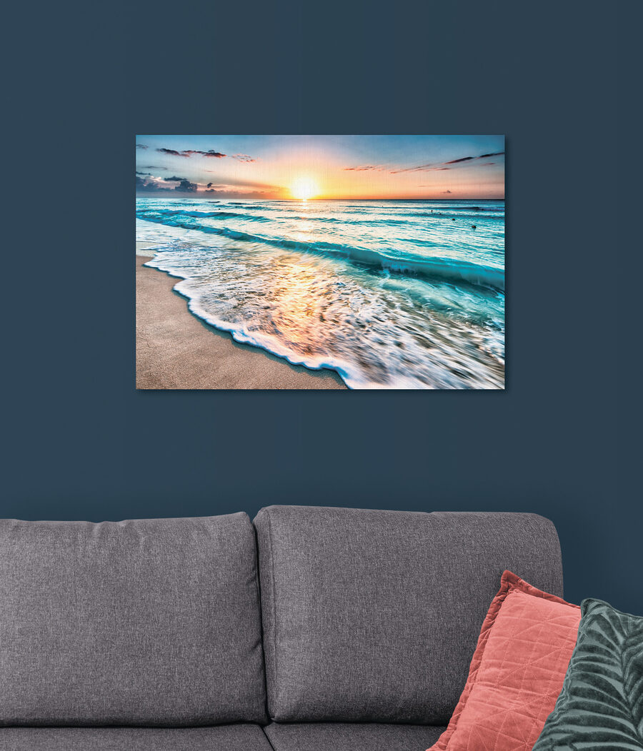 Transformeer elke ruimte met deze prachtige canvasprint, “Waves on a Beach”. Stel je voor dat je je kamer binnenloopt en begroet wordt door het zachte kabbelen van de golven, zelfs als je mijlenver van de oceaan vandaan bent. Dit kunstwerk legt dat perfecte moment vast wanneer de zon onder de horizon zakt en de lucht in prachtige tinten schildert. Het is net een mini-vakantie aan je muur. Stel je gezellige avonden voor, misschien met een goed boek of een glas met iets verfrissends. Het is een visuele ontsnapping die warmte en rust brengt en herinneringen oproept aan zanderige tenen en een strandbriesje. Perfect voor iedereen die hunkert naar een stukje geluk aan zee!