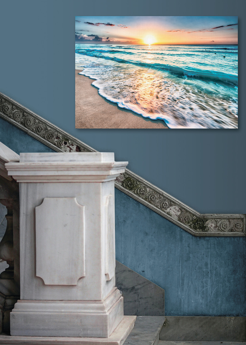 Transformeer elke ruimte met deze prachtige canvasprint, “Waves on a Beach”. Stel je voor dat je je kamer binnenloopt en begroet wordt door het zachte kabbelen van de golven, zelfs als je mijlenver van de oceaan vandaan bent. Dit kunstwerk legt dat perfecte moment vast wanneer de zon onder de horizon zakt en de lucht in prachtige tinten schildert. Het is net een mini-vakantie aan je muur. Stel je gezellige avonden voor, misschien met een goed boek of een glas met iets verfrissends. Het is een visuele ontsnapping die warmte en rust brengt en herinneringen oproept aan zanderige tenen en een strandbriesje. Perfect voor iedereen die hunkert naar een stukje geluk aan zee!