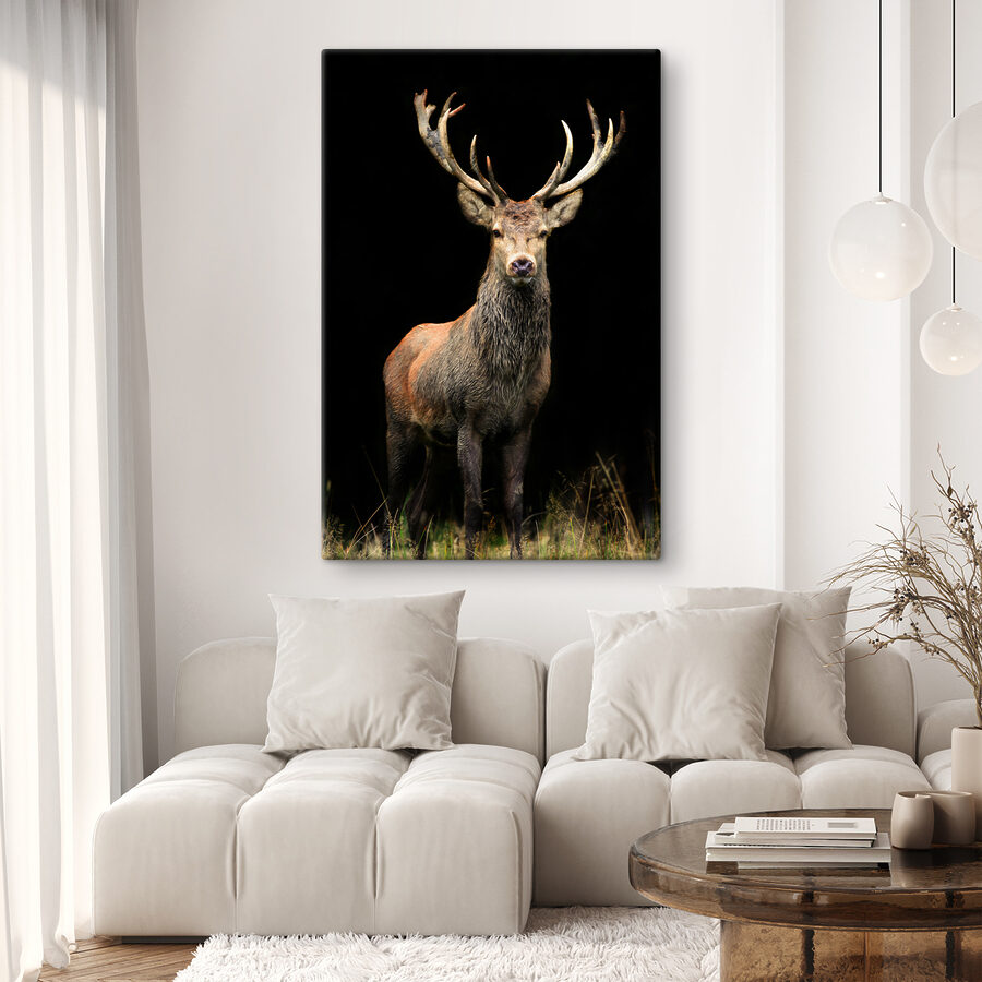 Wil je een vleugje magie aan je interieur toevoegen? Bekijk dan deze canvasprint van een majestueus hert in zijn natuurlijke omgeving. Het is net alsof je een stukje bos in je woonkamer hebt! Het rijke detail in de vacht van het hert en de indrukwekkende aanwezigheid van zijn gewei geven je het gevoel dat je hem bijna kunt aanraken. Perfect voor dierenliefhebbers of iedereen die een beetje van de natuur naar binnen wil halen, dit stuk is geweldig om gesprekken op gang te brengen of om gewoon te verdwalen in de schoonheid van de natuur vanuit je luie stoel. Stel je voor dat je tot rust komt aan het einde van een hectische dag, een kopje thee drinkt en naar dit serene wezen staart – het zal zeker een beetje rust en verwondering in je leven brengen. Geef je muren wat persoonlijkheid met dit prachtige, op de natuur geïnspireerde kunstwerk!