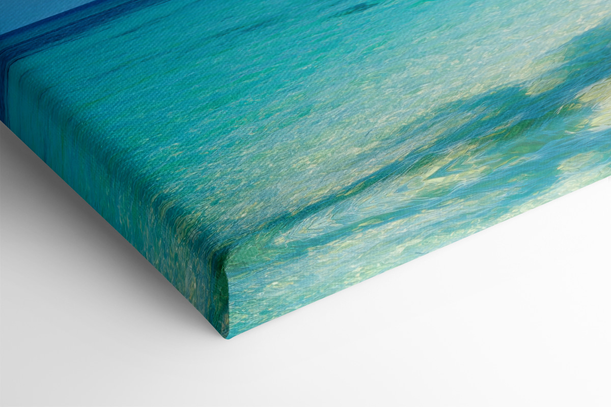 Het heeft levendige groene en blauwe tinten waardoor je de zon op je huid voelt en de zeebries in je haar. Het is net een instant vakantiegevoel, zonder dat je een vliegticket nodig hebt. Deze print brengt je gemakkelijk naar de vredige kusten, waar zorgen verdwijnen met het getij. Geweldig voor natuurliefhebbers, strandgangers of iedereen die een vleugje van het buitenleven in hun ruimte wil. Bovendien is hij subtiel genoeg om op te vallen, maar toch opvallend genoeg. Een perfecte mix!