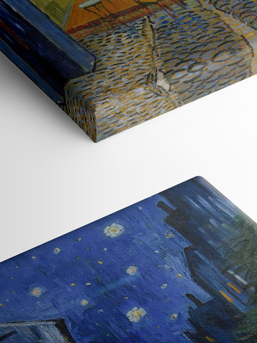 Stel je voor dat je de charme van een bruisend straatcafé in je woonkamer brengt! Deze canvasprint, “Schilderij van een straat met tafels en stoelen”, brengt je meteen naar een gezellige Europese stad onder een sterrenhemel. Stel je voor: kleurrijke tafels, flikkerende lichten, het gezoem van geklets – je kunt het bijna horen. Perfect voor liefhebbers van stadsgezichten of iedereen die een vleugje eigenzinnigheid en warmte wil toevoegen aan een ruimte, het is een conversatiestuk dat uitnodigt tot dromerige nostalgie. Stel je eens voor hoe het is om vrienden te ontvangen, met wijn in de hand, onder de magie van dit tafereel.