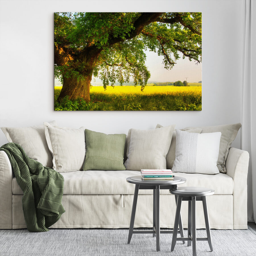 Haal de serene schoonheid van de natuur in huis met deze prachtige canvasprint met een majestueuze boom die zijn schaduw werpt over een zonovergoten veld. Stel je een luie middag voor onder dat uitgestrekte bladerdak, met een zacht briesje dat de zoete geur van bloeiende bloemen met zich meedraagt. Dit kunstwerk is perfect om elke kamer op te fleuren en nodigt uit tot dagdromen over picknicks en rustige ontsnappingen. Het is alsof je een stukje van het buitenleven aan je muur hebt hangen, waardoor elke dag een beetje vrediger wordt. Wie wil er nu niet tot rust komen in zo’n mooie ruimte? Voeg een vleugje op de natuur geïnspireerde charme toe en laat je muren ademen!