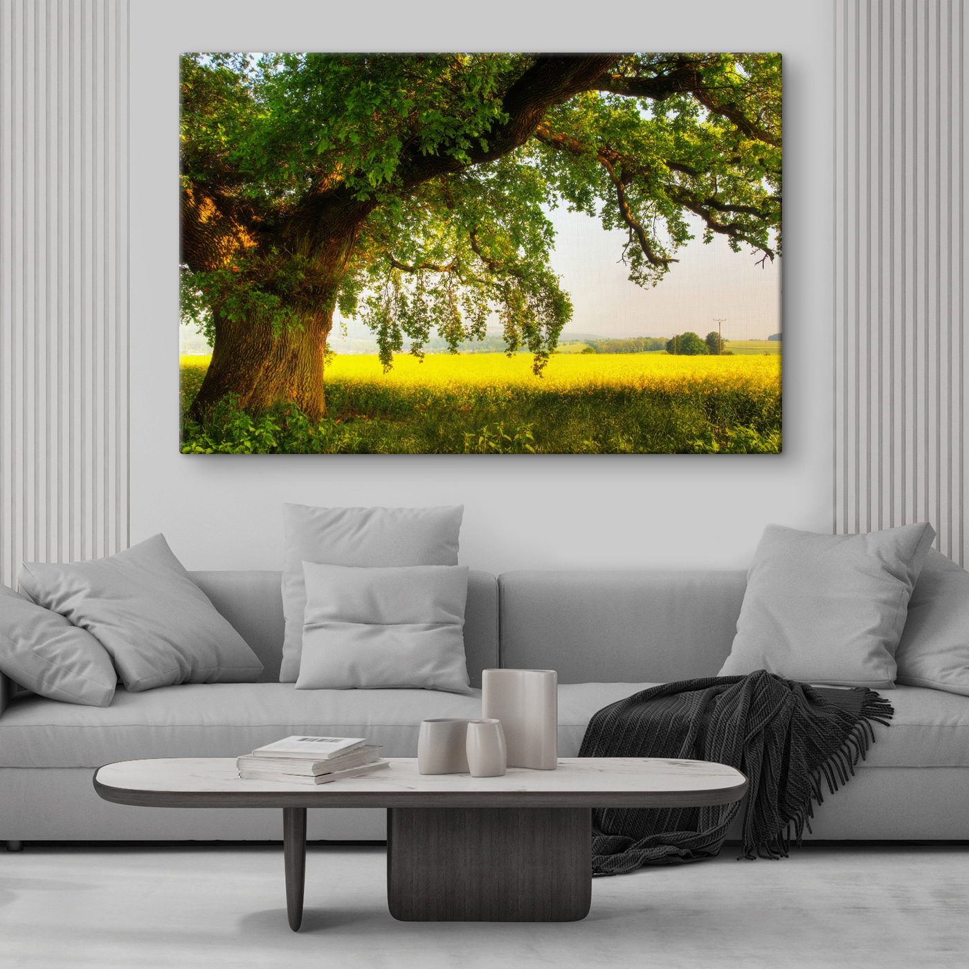 Haal de serene schoonheid van de natuur in huis met deze prachtige canvasprint met een majestueuze boom die zijn schaduw werpt over een zonovergoten veld. Stel je een luie middag voor onder dat uitgestrekte bladerdak, met een zacht briesje dat de zoete geur van bloeiende bloemen met zich meedraagt. Dit kunstwerk is perfect om elke kamer op te fleuren en nodigt uit tot dagdromen over picknicks en rustige ontsnappingen. Het is alsof je een stukje van het buitenleven aan je muur hebt hangen, waardoor elke dag een beetje vrediger wordt. Wie wil er nu niet tot rust komen in zo’n mooie ruimte? Voeg een vleugje op de natuur geïnspireerde charme toe en laat je muren ademen!