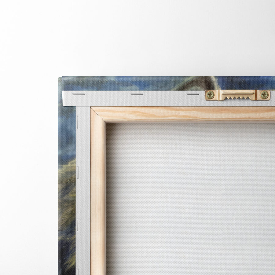 Oké, moet je dit zien. Deze canvasprint, “Wolven knuffelen in besneeuwd bos”, is meteen een ticket naar winterwonderland. Serieus, het is die perfecte mix van wild en gezellig. Twee wolven, met hun gezichten zachtjes tegen elkaar aan, delen dit prachtige intieme moment. Je kunt de koude lucht bijna voelen en het zachte kraken van de sneeuw onder hun poten horen. Dit werk is magisch en brengt de stille, liefdevolle verhalen van de natuur rechtstreeks naar je woonkamer.