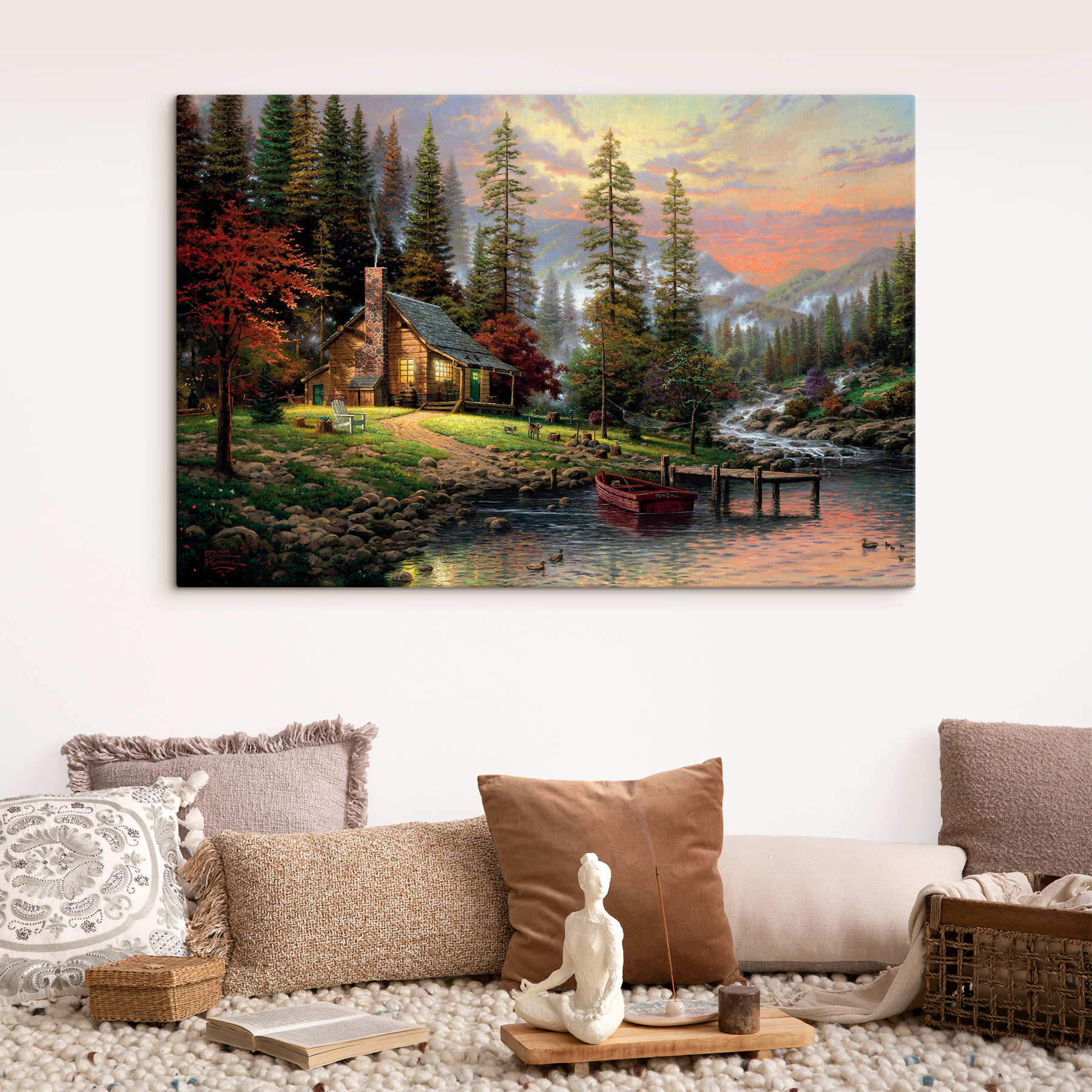 Stel je voor dat je in een scène stapt waar de natuur haar geheimen fluistert, een gezellige hut genesteld aan een rustige rivier. Deze canvasprint vangt de essentie van vredige avonden aan het water, waar het zachte kabbelen van de golven zich mengt met de zoete geur van dennenbomen. Perfect om warmte toe te voegen aan elke hoek, het brengt een vleugje rustieke charme dat gewoon goed voelt. Stel je voor dat het in een woonkamer hangt, gesprekken aanzwengelt over weekendjes weg of een serene achtergrond creëert voor luie middagen. Het is niet zomaar een decor; het is een herinnering aan eenvoudige genoegens. Jouw ruimte verdient deze warme omhelzing van de natuur.