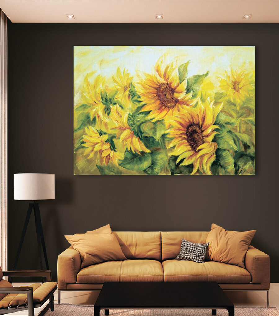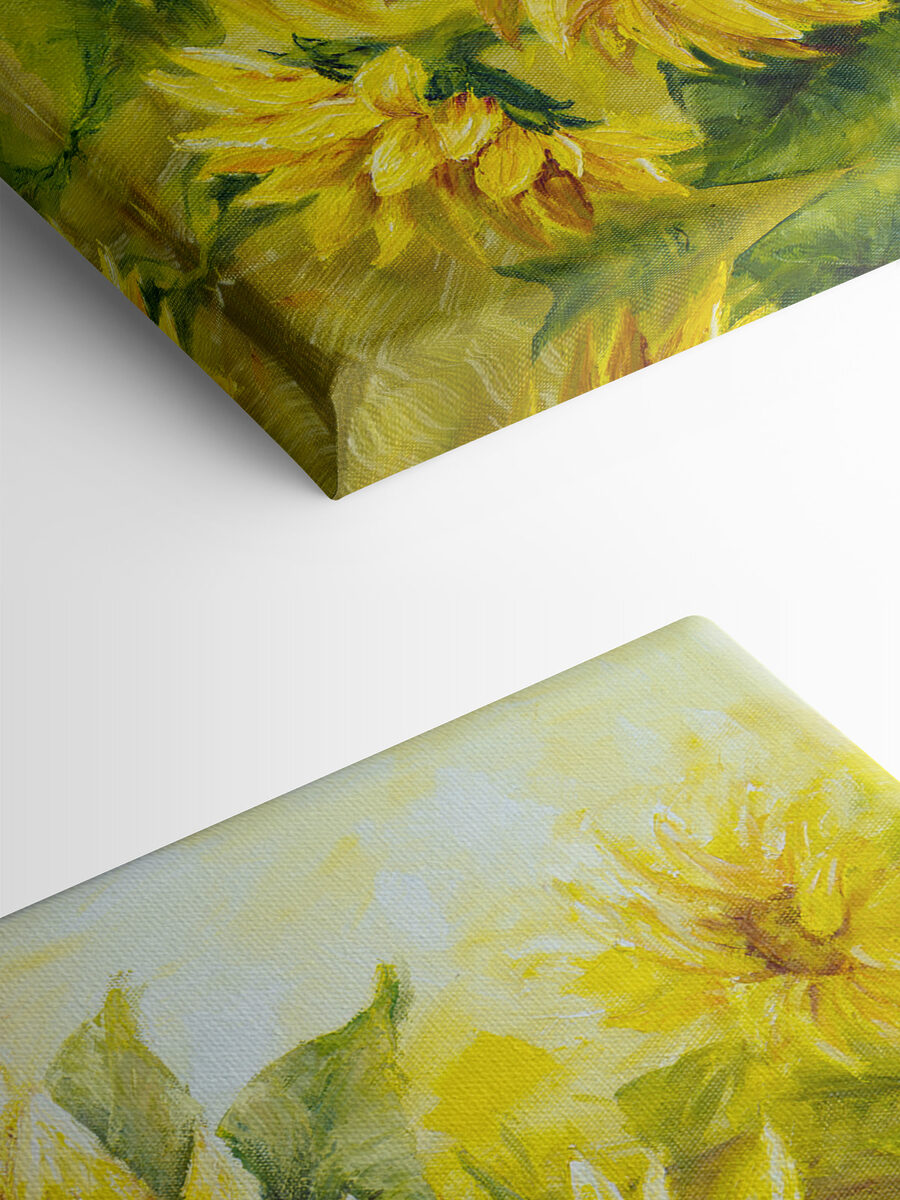 Fleur elke ruimte op met deze vrolijke canvasprint van zonnebloemen. Het is als een stukje zonneschijn gevangen op je muur. Stel je voor dat je je kamer binnenloopt en die warme, donzige vibe over je heen voelt komen – net als een goede knuffel. Deze opvallende bloemen dansen over het canvas, hun levendige geel en groen brengen leven en energie in je inrichting. Perfect voor een gezellig hoekje of een levendige woonkamer, dit stuk raakt het hart en voegt een vleugje vreugde toe. Vertrouw op die zonnebloemen om elke dag een beetje vrolijker te maken in je huis.