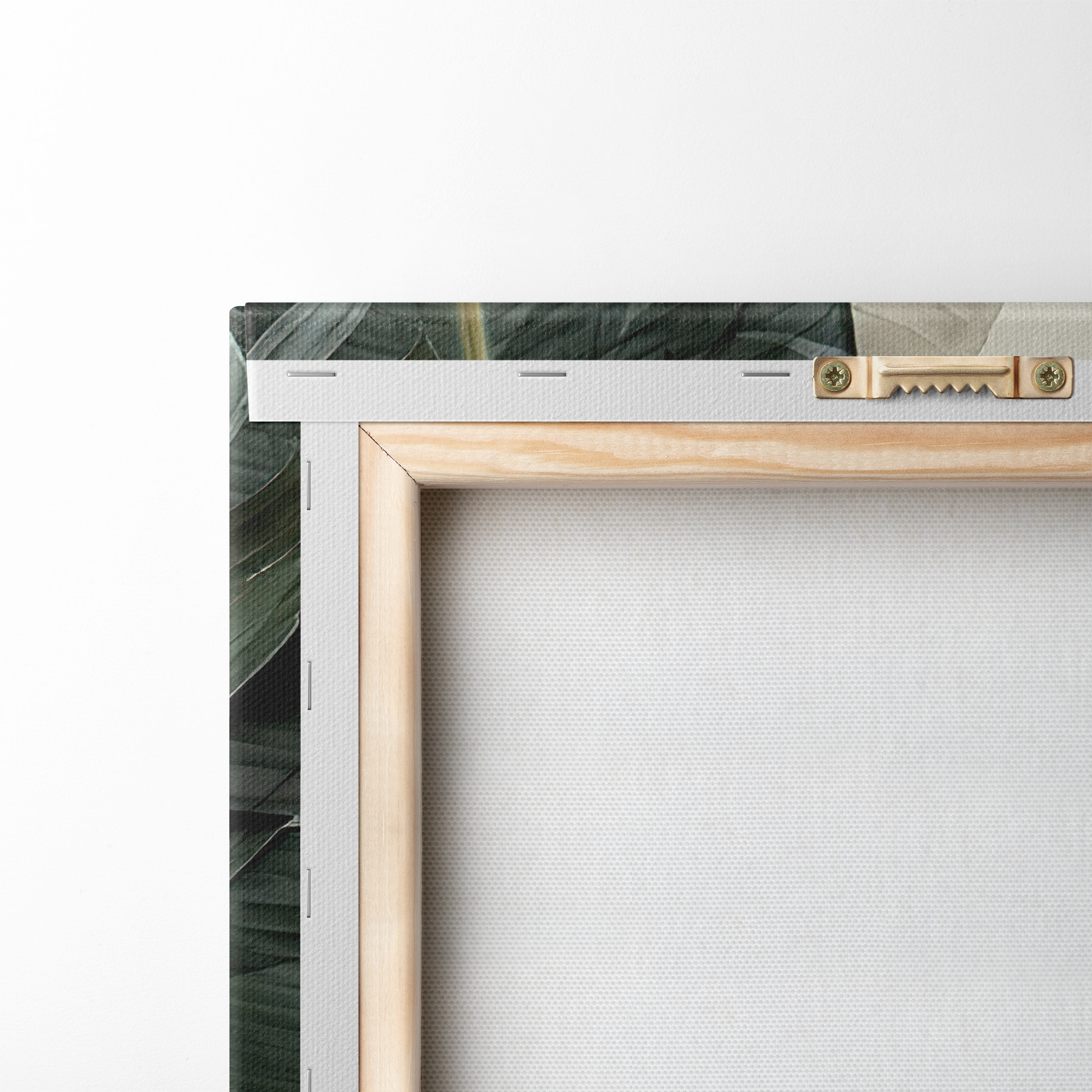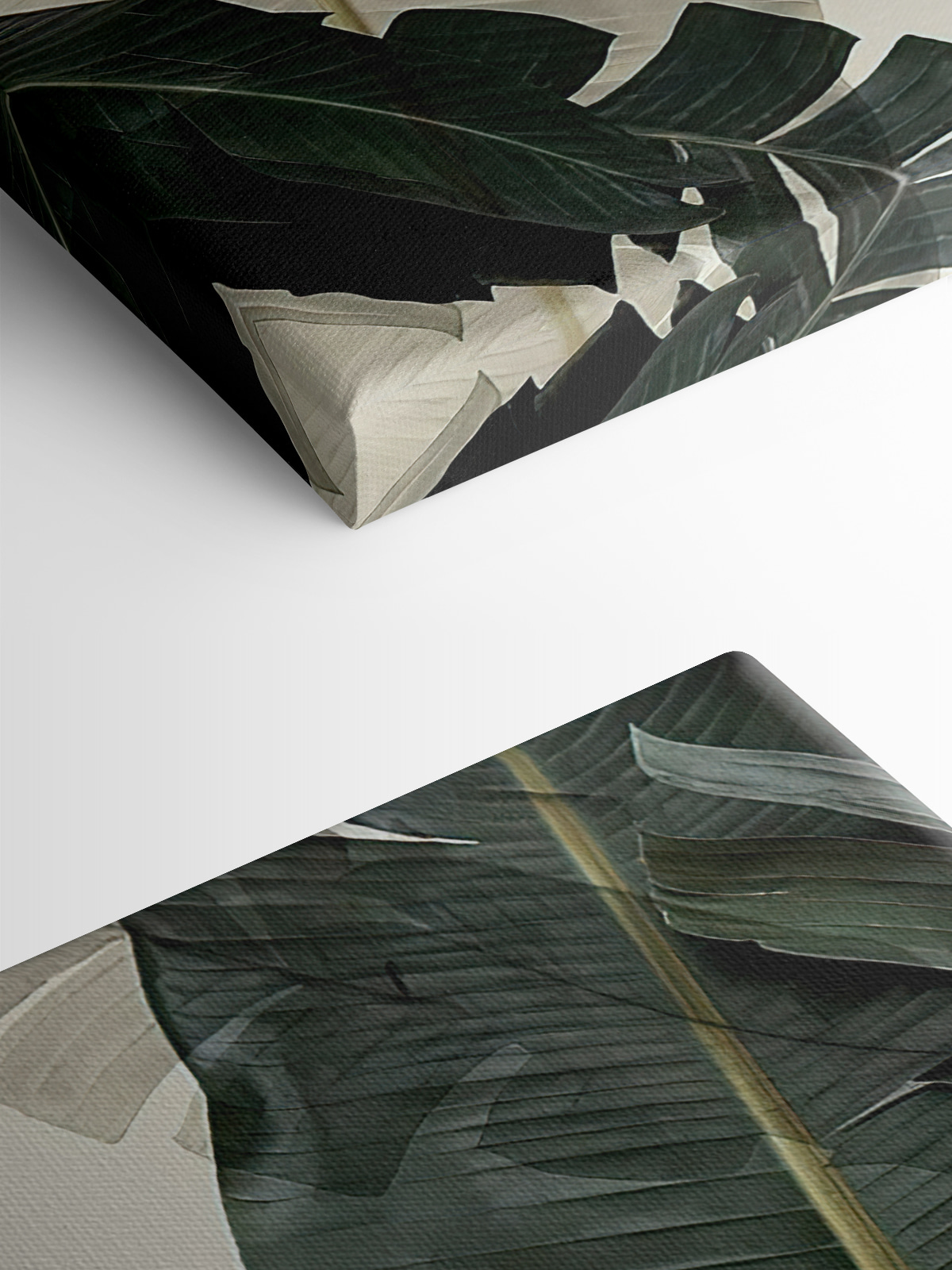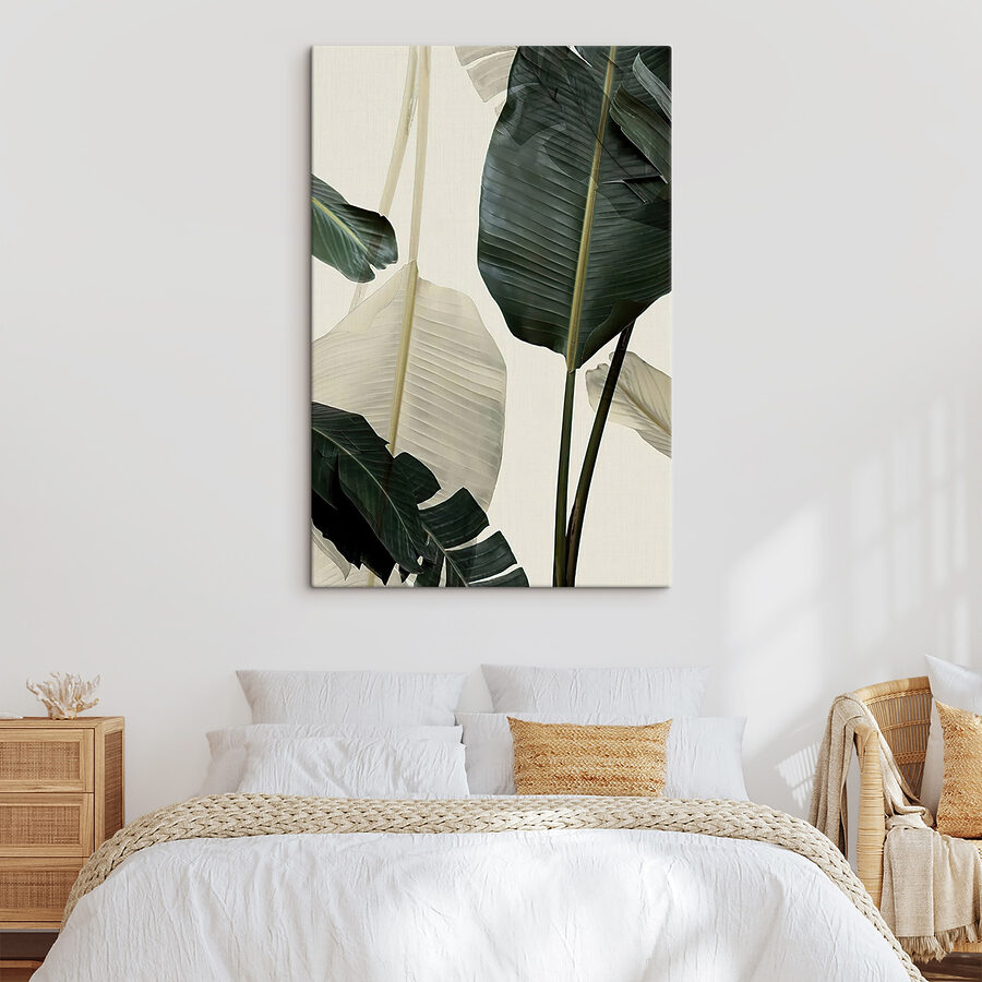 Stel je dit eens voor: een uitbarsting van rust telkens wanneer je naar je muren kijkt. “Canvas Schilderijen Banana Leaves in Soft Light geeft je ruimte de serene schoonheid van de natuur. Die ingewikkeld gedetailleerde bananenbladeren? Het is net alsof je een tropische miniatuurjungle in huis hebt. Het is perfect om een saai hoekje op te fleuren of elke kamer een frisse, levendige toets te geven.