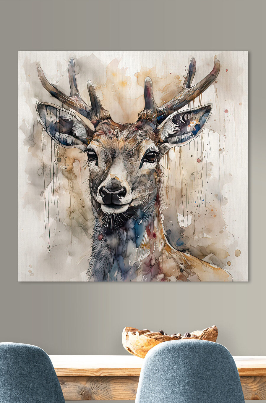 Transformeer de ruimte met dit charmante aquarel portret van een hert! Stel je voor: een elegant hert met een trots gewei staart zachtjes vanaf de muur en brengt de natuur binnenshuis zonder dat je je zorgen hoeft te maken dat er wilde dieren naar binnen wandelen. Dit kunstwerk spreekt boekdelen – het is een gespreksstarter en een zachte herinnering aan de allure van de natuur. Perfect voor kinderkamers of een gezellig hoekje, het voegt een vleugje warmte en creativiteit toe. Stel je voor dat vrienden het bewonderen bij de koffie, of dat je op rustige momenten de schoonheid in je opneemt. Een klein kunstwerkje dat een wereld van verwondering bij je thuis brengt.
