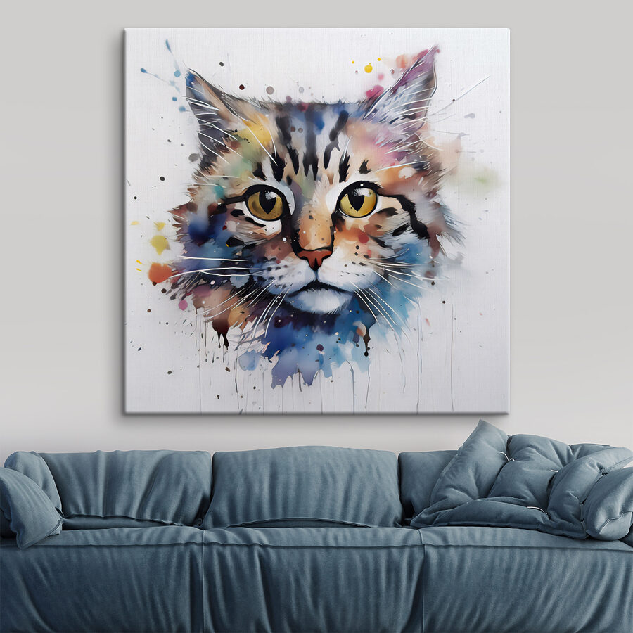 Fleur elke ruimte op met dit prachtige canvas schilderij van een kat. Het is alsof je eigen kleine haarbal je aanstaart, vol persoonlijkheid en charme. De speelse kleurspatten nodigen uit tot glimlachen en gesprekken – perfect voor een gezellig hoekje of een levendige woonkamer. Stel je voor dat je lekker op de bank ligt, nippend aan je favoriete drankje, terwijl deze harige katachtige de kamer betovert. Het is niet alleen kunst; het is een dagelijkse dosis vreugde. Voeg een vleugje eigenzinnigheid toe en laat deze kat zijn weg naar je hart en huis charmeren – want wie wil er nu geen levendige, kunstzinnige metgezel?