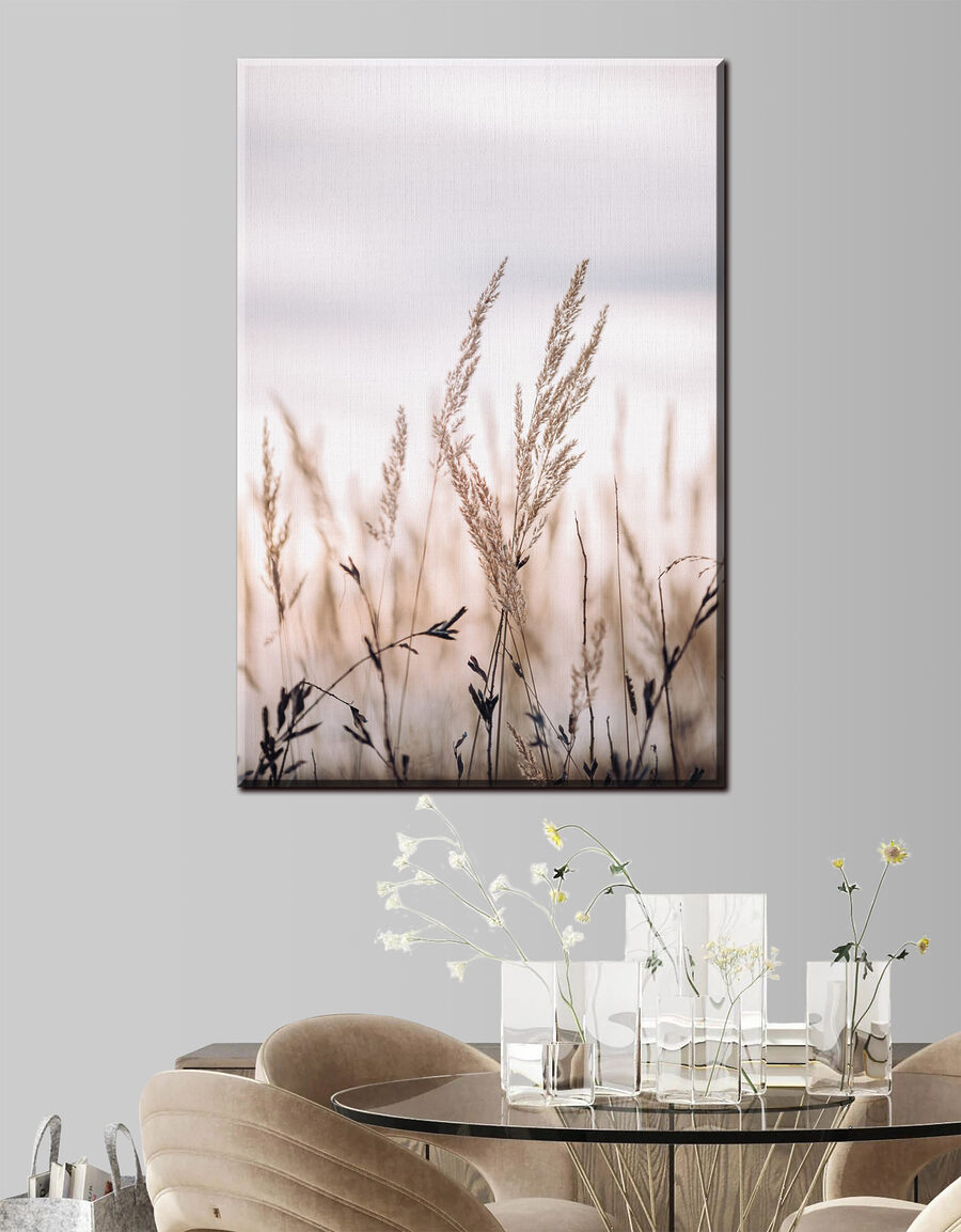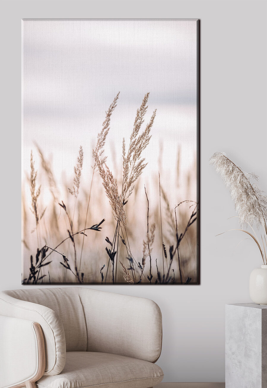 Stel je voor dat je na een lange dag thuiskomt en wordt begroet door de zachte omhelzing van de natuur in je woonkamer. “Fluisterend riet in sereen licht” is als een zachte knuffel voor je muren. De fijne grassen die wiegen in de wind laten je bijna fluisteren, als een geheimpje van de natuur. Dit rustgevende stuk voegt een vleugje rust en elegantie toe en verandert elke ruimte in een vredig toevluchtsoord. Perfect voor iedereen die behoefte heeft aan een ontsnapping zonder ooit het huis te verlaten. Is het niet heerlijk om kunst sereniteit in je leven te laten brengen?