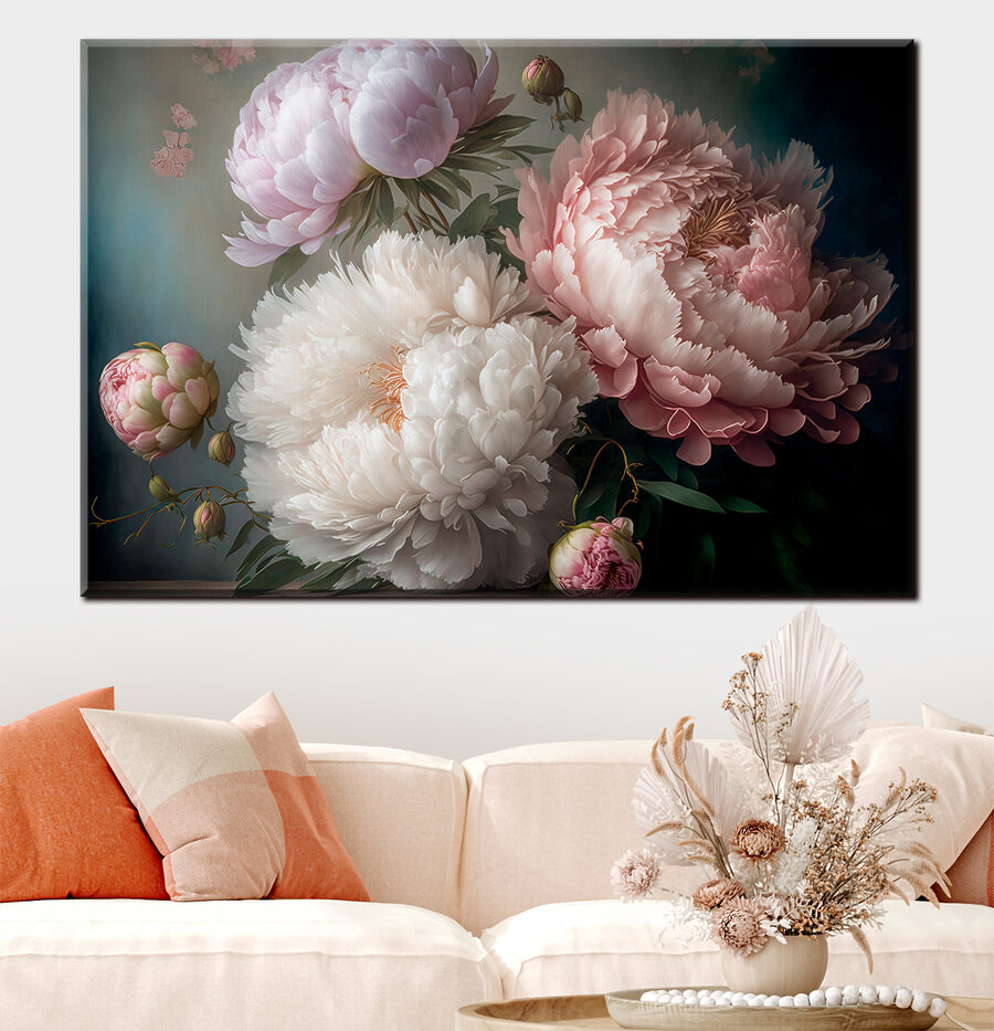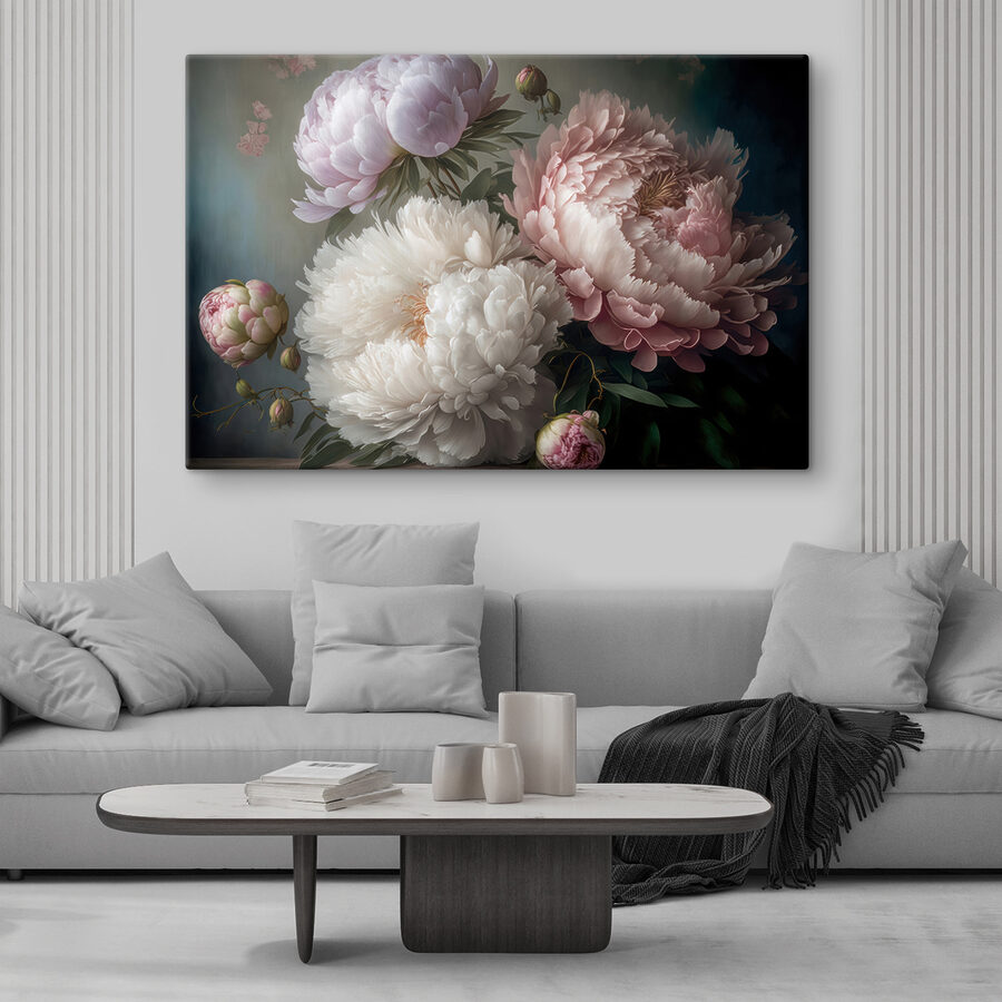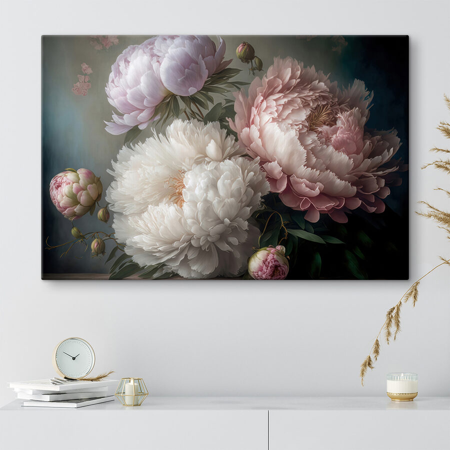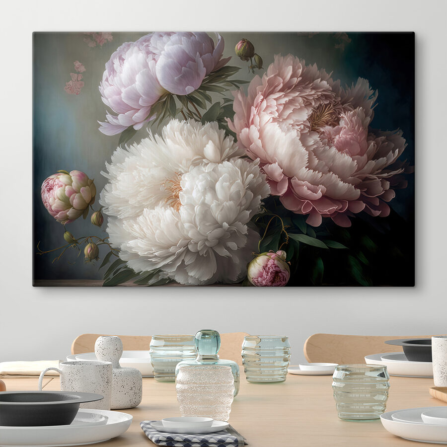 Tover elke ruimte om in een sereen toevluchtsoord met deze prachtige canvasprint met elegante pioenrozen in zachte bloei. Deze bloemen, zoals die vriend die altijd zonneschijn brengt, zorgen voor warmte en kleur en creëren een uitnodigende sfeer. Stel je voor dat je thee drinkt terwijl dit prachtige kunstwerk zachtjes aan je muur hangt en je aanzet tot dagdromen en gefluister over de lente. Elk bloemblaadje lijkt een verhaal te vertellen, waardoor je hart sneller gaat kloppen. Perfect om een woonkamer op te fleuren of een elegante slaapkamer mee in te richten, dit kunstwerk zal jou en je gasten een goed gevoel geven.