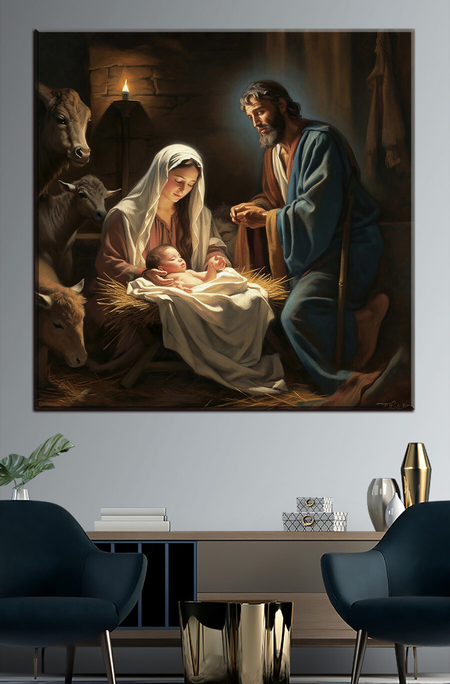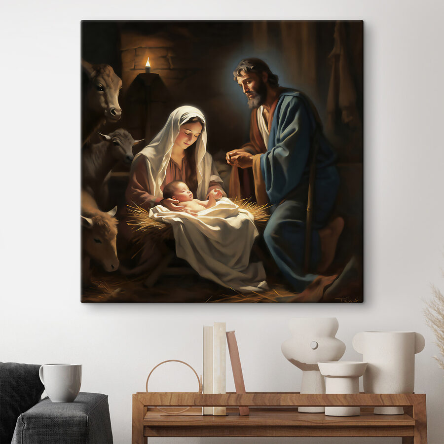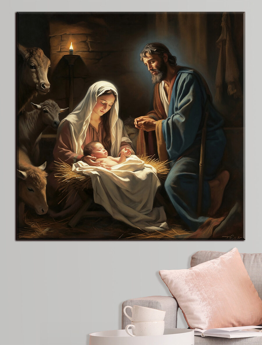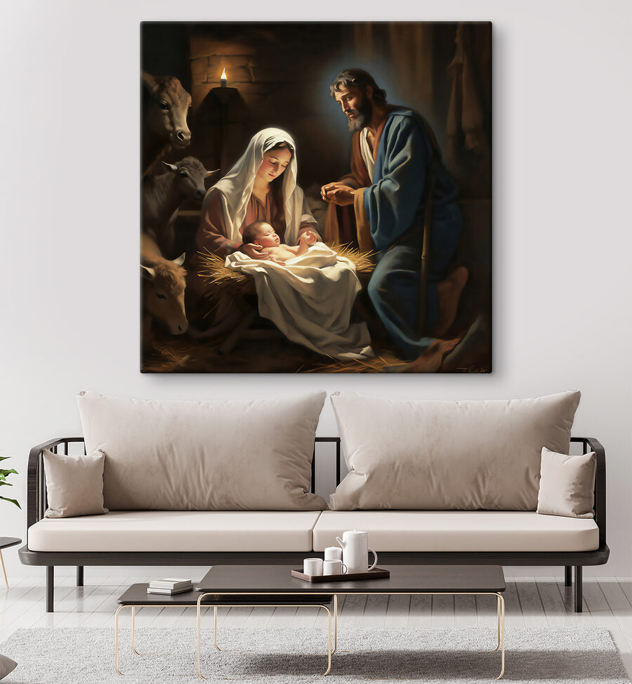 Stel je voor dat je deze prachtige canvasprint in huis hebt. Het is alsof je de zachte slaapliedjes kunt horen en de warmte van het brandende kaarsje kunt voelen. “Woman holding a baby’ is niet zomaar een kunstwerk; het is een deuropening naar een moment van vrede en tederheid. Perfect voor iedereen die religieuze beelden waardeert of gewoon houdt van de serene schoonheid van het moederschap. Hang het boven je schoorsteenmantel of in je knusse leeshoekje; het brengt een gevoel van rust en eerbied in de kamer. Bovendien is het een geweldige gespreksstarter – wie zou er niet graag praten over dit klassieke maar intieme tafereel? Elke penseelstreek op deze reproductie spreekt boekdelen en legt een tafereel vast dat zowel tijdloos als ontroerend is. Breng een stukje goddelijke sereniteit in je kamer met dit meesterwerk – het zal je hart zeker verwarmen en je ogen laten hangen.