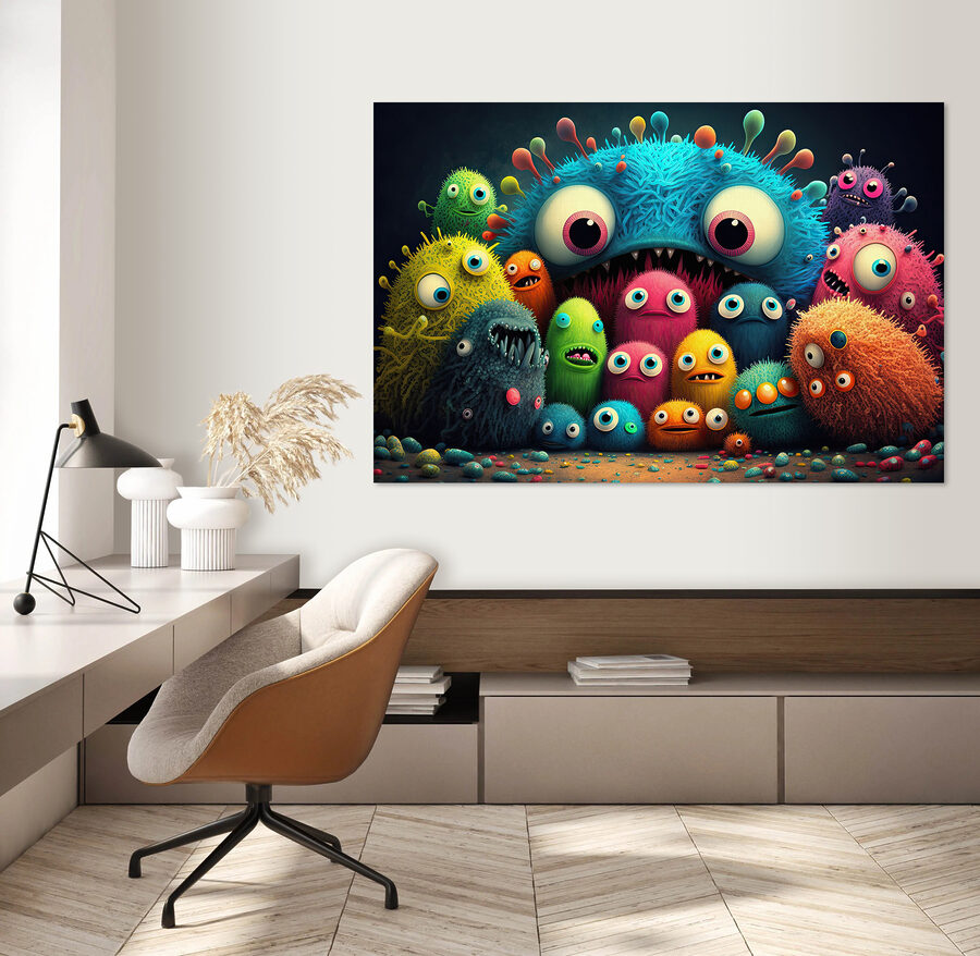 Verander de ruimte van je kind in een uitbarsting van plezier met ons “Canvas Schilderijen Groep van kleurrijke monsters” kunstwerk. Deze eigenzinnige, schattige monsters zijn er niet om bang te maken – ze zijn er om te charmeren! Stel je de vreugde en het gegiechel voor als de kleintjes verhalen verzinnen over elk donzig wezen met grote ogen. De felle kleuren en gekke uitdrukkingen zorgen voor een innemende en speelse sfeer. Het is bijna alsof deze kleurrijke vrienden klaar zijn om van het doek af te springen en mee te doen. Een absolute must-have voor elke ruimte die behoefte heeft aan vrolijkheid en warmte.