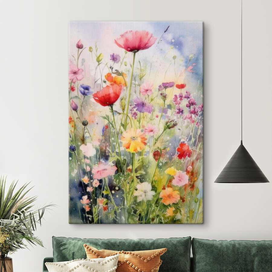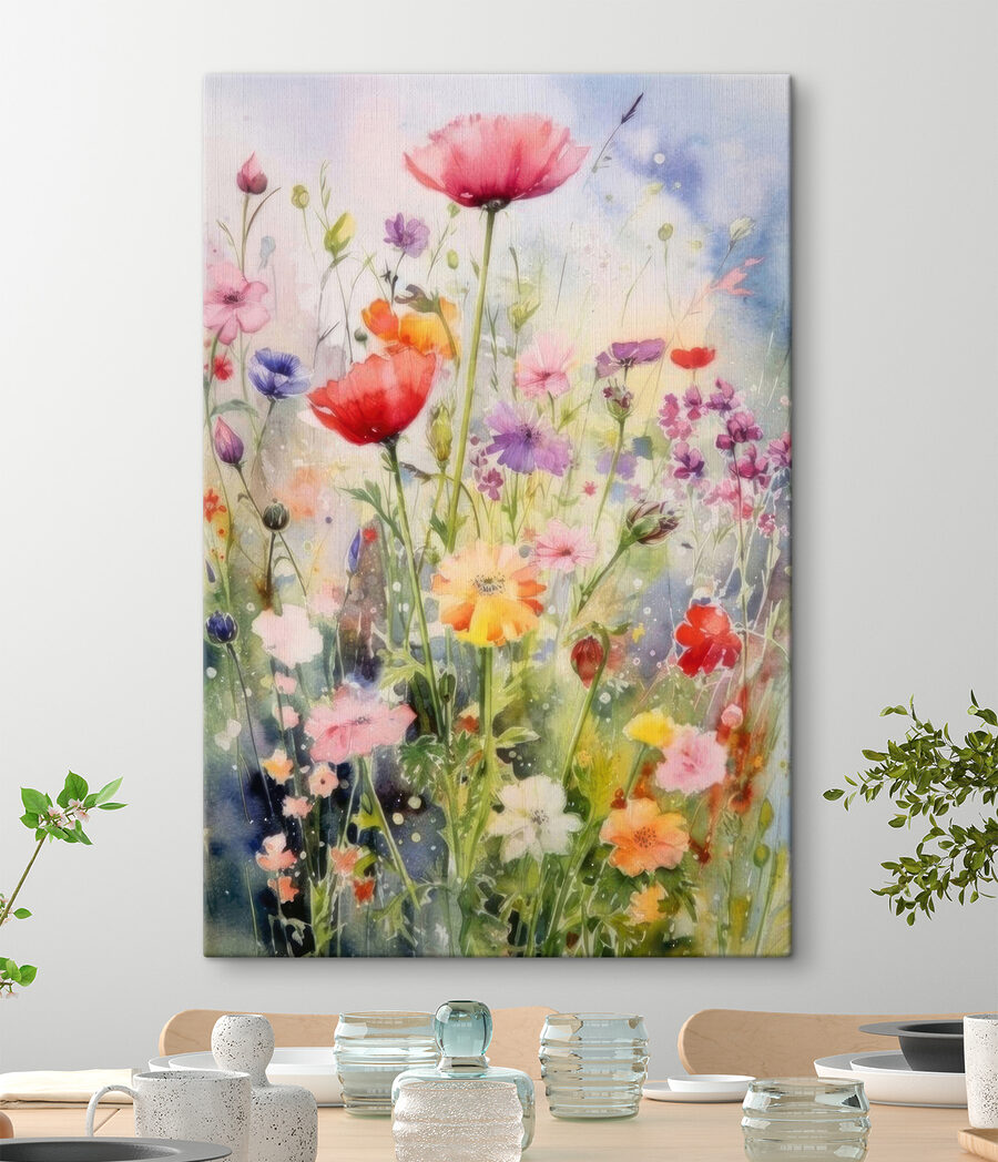 Fleur je kamer op met deze prachtige “Wildflowers in Vibrant Watercolor Hues” canvasprint. Het is als een frisse wind voor je muren! De levendige mix van kleuren – roze, paars, geel – en die delicate bloemblaadjes schreeuwen gewoon lente, nietwaar? Perfect voor iedereen die droomt van zonnige weiden maar genoegen moet nemen met stadse smog. Telkens als je ernaar kijkt, waan je je in een veld met wilde bloemen, met een zacht briesje dat de zoete geur van bloesems met zich meedraagt. Het is niet alleen kunst; het is een ontsnapping. En stel je de gesprekken eens voor die ontstaan als er vrienden langskomen! Een stukje bloemenhemel aan je muur.