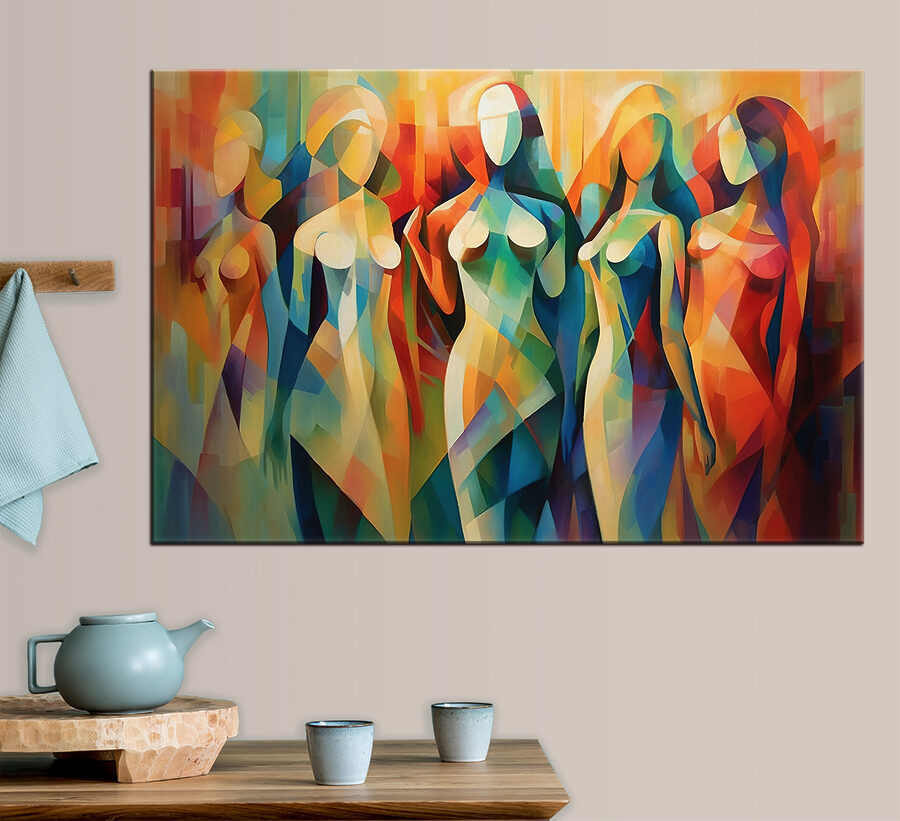 Wil je een vleugje levendige kleur en een vleugje elegantie toevoegen aan je interieur? Dan is deze canvasprint met een fascinerend abstract schilderij van een vrouwenlichaam de perfecte keuze. Het spel van kleuren – rijke rode tinten, rustig blauw en warm geel – voelt aan als een visuele symfonie. Stel je voor dat dit schilderij in je woon- of slaapkamer hangt, met een vleugje hedendaagse kunst die zeker een gesprek op gang zal brengen. Het is niet zomaar een decoratie; het is alsof je een stukje van een droom aan je muur hebt hangen. Er is iets bijna magisch aan de manier waarop de vormen een gevoel van sierlijke beweging creëren, waardoor je ruimte levendig aanvoelt. Of je nu een doorgewinterde kunstliefhebber bent of gewoon iemand die van mooie dingen houdt, dit canvas zal je doen glimlachen elke keer als je het ziet. Het is warm, uitnodigend en een beetje een blikvanger en perfect voor iedereen die de fijnere, maar leuke dingen in het leven waardeert.
