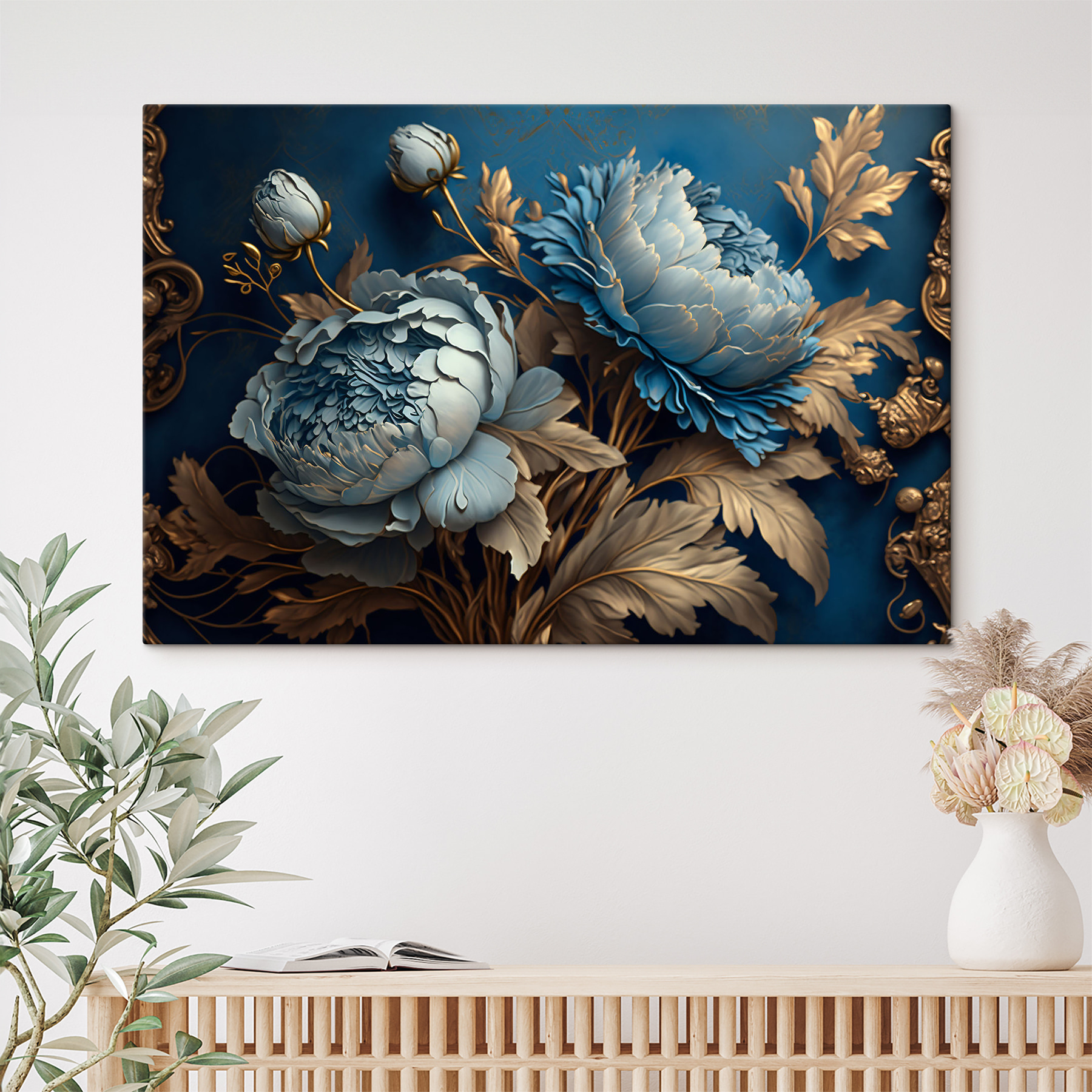 Fleur elke ruimte op met deze prachtige canvasprint met die prachtige blauwe bloemen, perfect gecombineerd met sierlijke details. Stel je voor dat je een kamer binnenloopt en de rustgevende sfeer voelt die deze prachtige bloemen met zich meebrengen – het is alsof je een stukje natuur in huis haalt. Vrienden zullen je vragen waar je zo’n uniek stuk hebt gevonden. Hang het in de woonkamer of in je gezellige leeshoekje voor een instant stijlboost. Het is niet alleen decor, het is een gespreksstarter, een sfeermaker. Wie wil er nou niet wat bloemenvrolijkheid om zich heen? Perfect voor wie van kunst met een twist houdt!