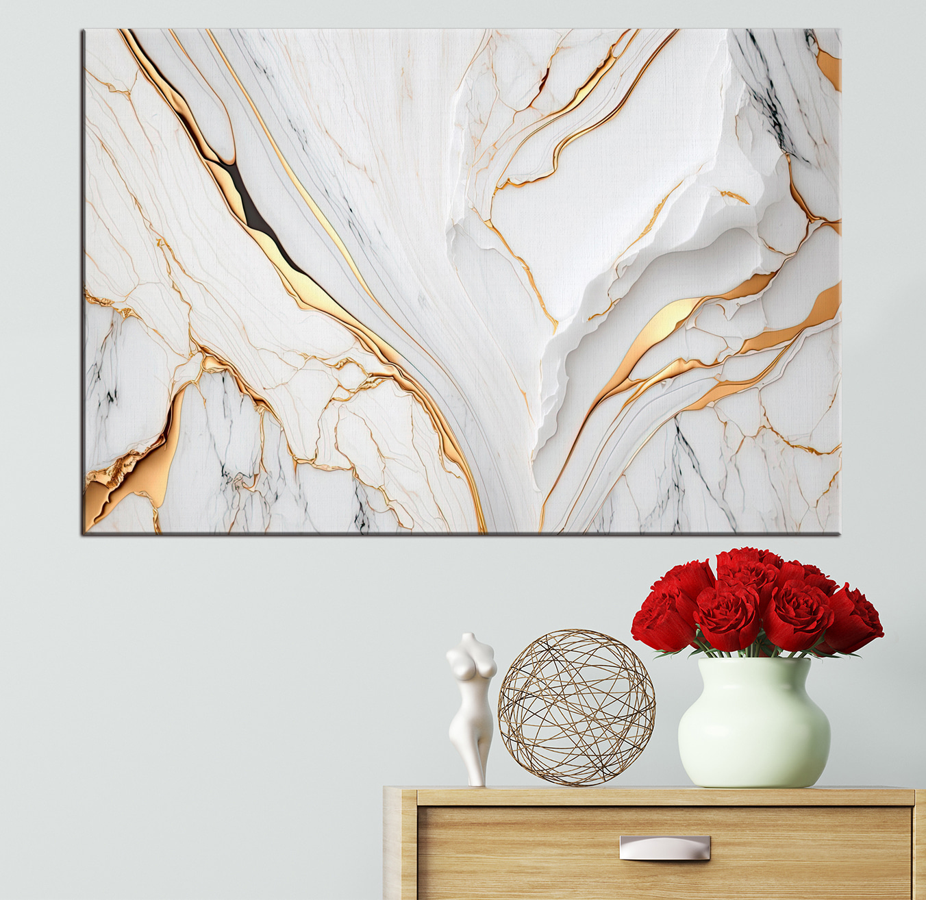 “Canvas Schilderijen Elegant Marmer met Amberkleurige Accenten” is gewoonweg prachtig. Serieus, stel je voor dat deze schoonheid in je woon- of slaapkamer hangt – het is echt een game-changer. Het minimalistische ontwerp, met die chique marmeren texturen en de onverwachte amberkleurige accenten, brengt een vleugje verfijning zonder overdreven te zijn. Het is chic maar toch down-to-earth. Het voelt alsof dit meubel elke keer dat je ernaar kijkt rust en elegantie uitstraalt. Perfect voor iedereen die van strakke lijnen houdt en zijn ruimte een beetje kunstzinnig maar toch gezellig wil laten aanvoelen.