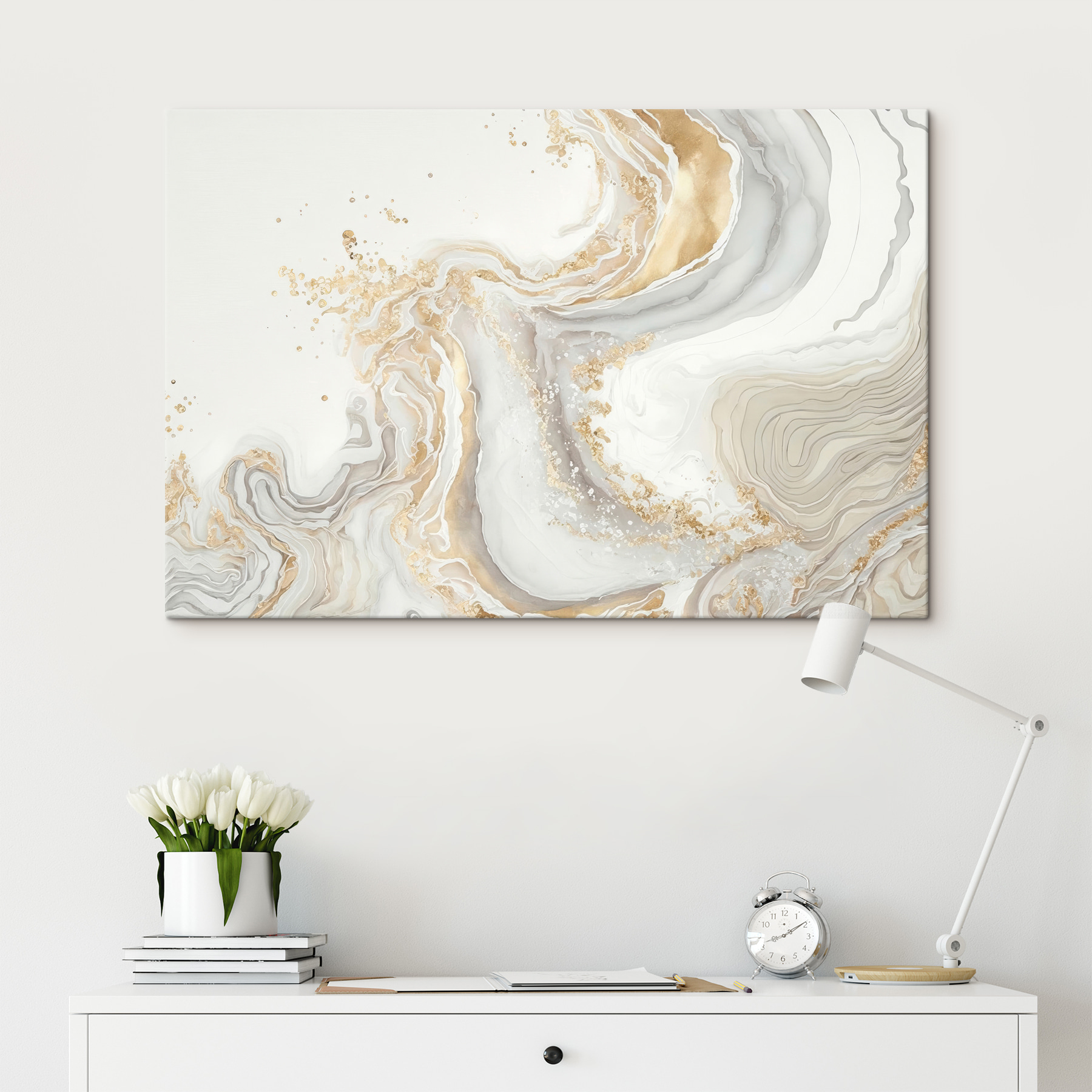 Transformeer elke ruimte met de elegante marmer swirl canvas print. Dit stuk biedt een prachtige mix van zachte tinten en vloeiende patronen, perfect om van een gewone muur een blikvanger te maken. Stel je voor dat je een kamer binnenloopt en verdwaalt in de zachte golven, zoals de oceaan, maar dan zonder het zand in je schoenen. Het is minimalistisch en toch fascinerend, waardoor het ideaal is voor gezellige hoekjes of stijlvolle woonkamers. Dit kunstwerk staat daar niet zomaar, het nodigt uit tot een gesprek, het geeft inspiratie en momenten van rust. Een beetje schoonheid kan alles veranderen!