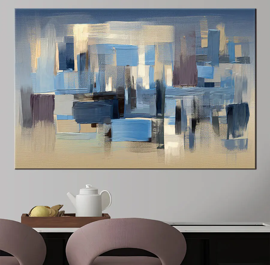 Bekijk deze prachtige canvasprint, “Abstract Stadsgezicht in Gedempte Tinten. Het is een prachtige mix van koele blauwtinten en zachte beige tinten, een beetje zoals een stedelijke dagdroom. Je weet wel, als je uit het raam staart en de gebouwen vervagen tot één mooi, rustig tafereel. Dit stuk past in elke kamer waar je een beetje rust wilt, misschien wel in je woonkamer of zelfs in een gezellige leeshoek. Er is iets zo rustgevend aan die gedempte tinten, ze fluisteren bijna ontspanning. Perfect om dat subtiele vleugje kunst toe te voegen zonder al te in-your-face te zijn. Stel je voor dat je na een lange dag thuiskomt en verdwaalt in die dromerige penseelstreken – het is net een mini-vakantie aan je muur! Hou je van de creativiteit hier? Ik ook.