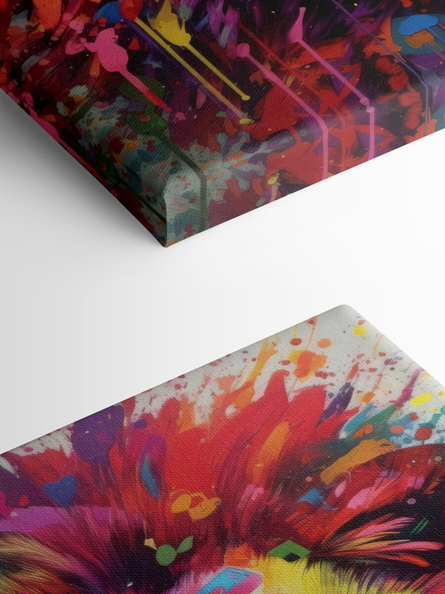 Fleur je kamer op met deze levendige canvasprint van een leeuw, met de hand geschilderd in een regenboog van kleuren die bijna van de muur af dansen. Stel je deze woeste katachtige voor die je woonkamer bewaakt – zijn speelse snorharen en betoverende blik trekken je naar binnen en lokken gesprekken en glimlachen van gasten uit. Het is het soort kunst dat je het gevoel geeft dat je leeft, net als die eerste slok koffie op een maandagochtend. Of het nu in een gezellig hoekje is of op een opvallende galerijmuur, deze leeuw brengt een wilde maar vrolijke sfeer en herinnert iedereen eraan dat het leven te kort is voor een saai decor.