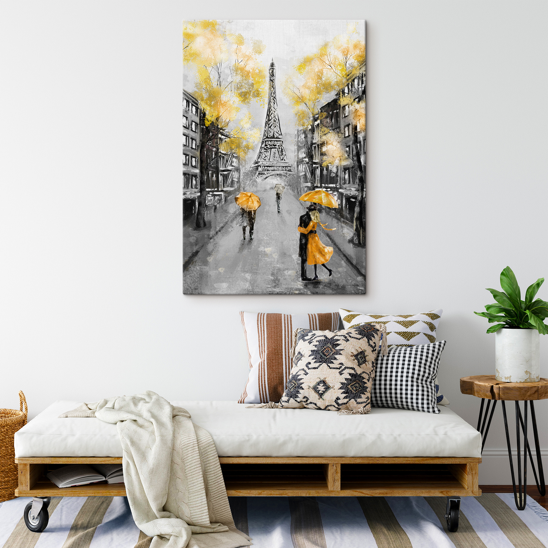 Stap in de charme van Parijs met deze prachtige canvasprint van bruisende straten onder een bladerdak van vrolijke gele paraplu’s. Het is als een klein venster naar de Stad van de Liefde, waar elke druppel regen een verhaal vertelt. Het is als een klein venster naar de Stad van de Liefde, waar elke druppel regen een verhaal vertelt. Stel je voor dat je lekker op de bank gaat zitten met een warm drankje in de hand, terwijl dit tafereel je doet dagdromen over romantische wandelingen en spontane avonturen. De Eiffeltoren steekt boven de gebouwen uit en herinnert ons aan alle wonderen die wachten om ontdekt te worden. Dit kunstwerk voegt een vleugje vreugde en een vleugje kleur toe aan elke ruimte en verandert deze in een gezellig hoekje dat fluistert, “Laten we een wandeling maken!”.