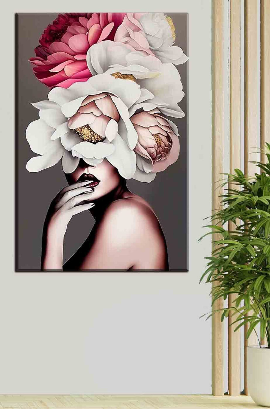 Duik in de dromerige allure van “Floral Elegance Embraces Mysterious Silhouette”. Deze prachtige canvasprint combineert elegantie en intrige op een manier die elke ruimte zal transformeren. Stel je een evenwichtig figuur voor getooid met een extravagant, bloeiend boeket – dit zijn niet zomaar bloemen; het is een kunstige explosie van kleuren en texturen! Perfect om een vleugje mysterie toe te voegen aan je woon- of slaapkamer. Stel je voor dat je elke dag wakker wordt met zo’n betoverende schoonheid – gewoonweg betoverend! Het is alsof je een geheime tuin in huis hebt. Al verliefd? Koop de jouwe nu en laat je muren verfijning en magie uitstralen.