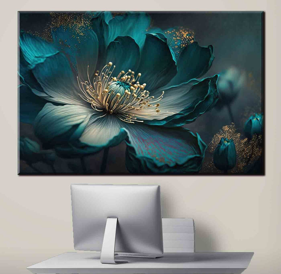 Deze groenblauwe bloemenprint op canvas is echt een topper. Kijk maar naar de manier waarop de bloemblaadjes oplichten met die lichtgevende accenten – het is net alsof de bloem een beetje magie op je muur sprenkelt. Perfect om een vleugje elegantie en een vleugje dromerige kleur toe te voegen aan elke kamer. Stel je voor dat hij boven je bank hangt of het middelpunt vormt van je slaapkamer – wat een uitstraling! Er is iets met die rijke groenblauwe tinten dat je naar binnen trekt en alles een beetje serener laat aanvoelen, nietwaar? Bovendien zit het in de categorie “Bloemen Canvas Kunst”, dus je weet dat het een schot in de roos is.