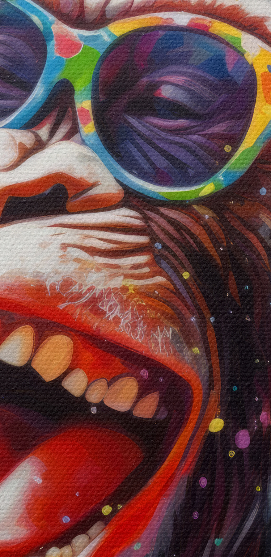 Dit is iets wat je niet elke dag ziet: een aap met een zonnebril en een koptelefoon! Deze canvasprint is als een uitbarsting van lachen voor je muren. Stel je voor dat je hier elke dag mee thuiskomt; dat is toch pure vreugde? De waterverfspatten voegen een speels tintje toe, bijna alsof de aap de tijd van zijn leven heeft op een muziekfestival. Je kunt hem bijna horen zeggen: “Waarom zo serieus?